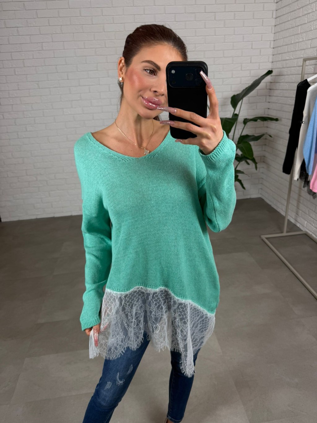 Asymetrický svetr NOREN je vyrobený z příjemného měkkého materiálu, který je hebký na dotek a velmi pohodlný po celý den. Materiál působí lehce, ale zároveň si drží svůj tvar a vytváří upravený, ženský vzhled bez zbytečného objemu. Díky volnějšímu střihu krásně splývá na postavě, neobepíná problematické partie a přirozeně zakryje oblast bříška i boků, čímž vytváří vyváženou siluetu. Dominantním detailem je asymetrické zakončení doplněné o jemnou krajku, která dodává svetru romantický a originální nádech. Tento detail působí velmi žensky a zároveň dělá z jednoduchého kousku něco výjimečného. Výstřih do tvaru V opticky prodlužuje krk a působí elegantně, zatímco dlouhé rukávy zajišťují komfort i během chladnějších dnů. Svetr NOREN je ideální na každodenní nošení – skvěle se kombinuje s džíny, legínami i elegantnějšími kalhotami. Díky univerzálnímu střihu sedí na konfekční velikosti XS až L a je vhodný pro různé typy postavy. Je to přesně ten kousek, který oživí tvůj šatník a zároveň ti poskytne maximální pohodlí.