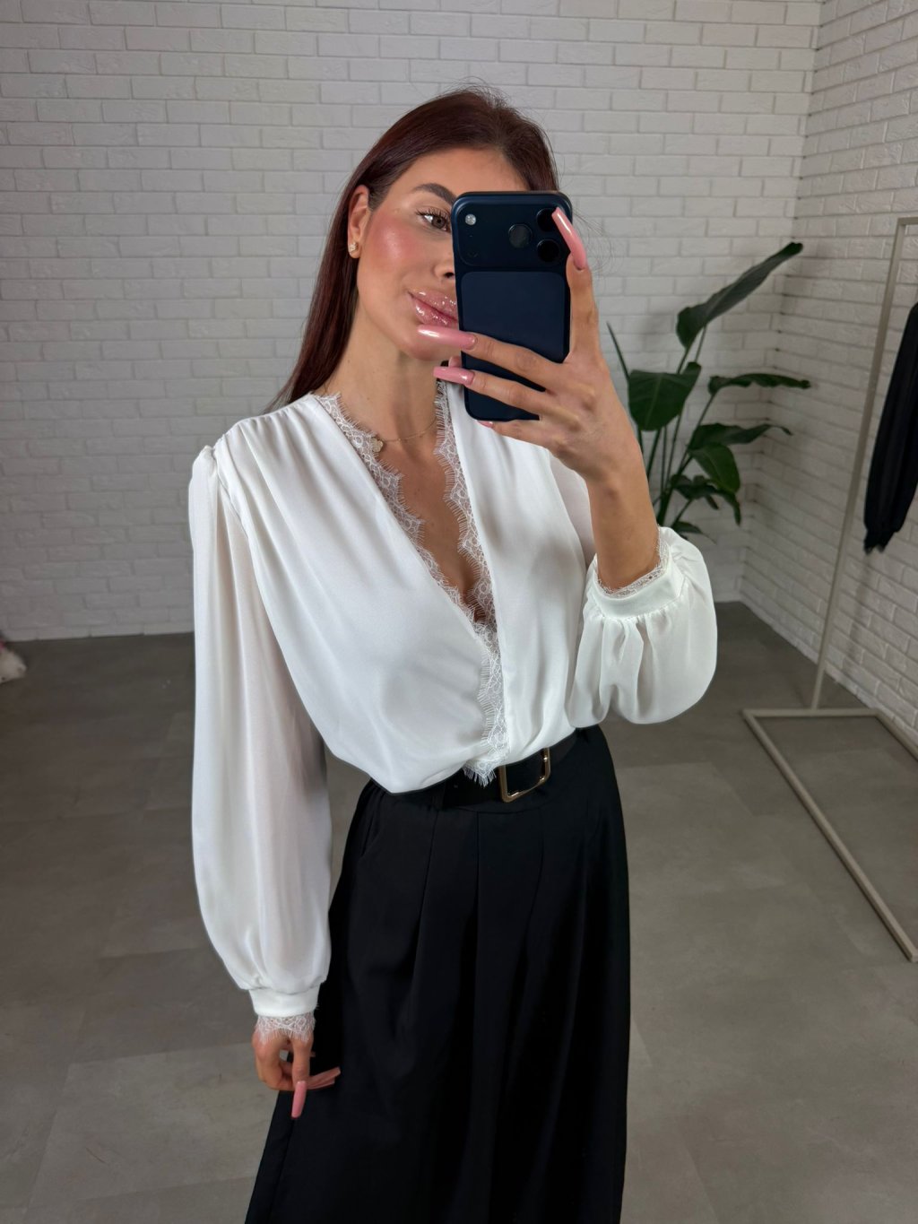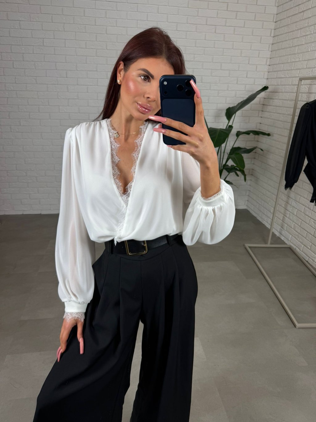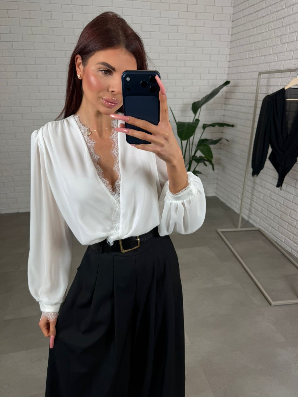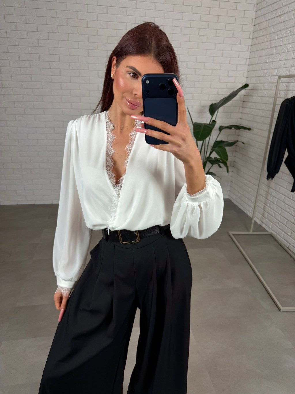 Body DAVIR je ušité z jemného šifonu, který působí něžně a velmi žensky. Největší výhodou je překládaný dekolt – můžeš si ho upravit přesně podle sebe, takže krásně sedne jak menšímu, tak i většímu poprsí a dekolt vždy vypadá upraveně. Tělo bodyčka má dvojitou vrstvu, díky čemuž se nemusíš bát prosvítání a klidně ho můžeš nosit i do práce nebo na formálnější příležitosti. Rukávy jsou jemně průsvitné a mírně rozšířené, takže na postavě vytvoří lehký, romantický efekt a zároveň jsou pohodlné i pro širší ruce – nic netlačí a krásně splývají. Body DAVIR velikostně sedne od S po XL a je to ten typ kousku, který okamžitě pozvedne celý outfit – stačí kalhoty, sukně nebo sako a působíš upraveně bez námahy.