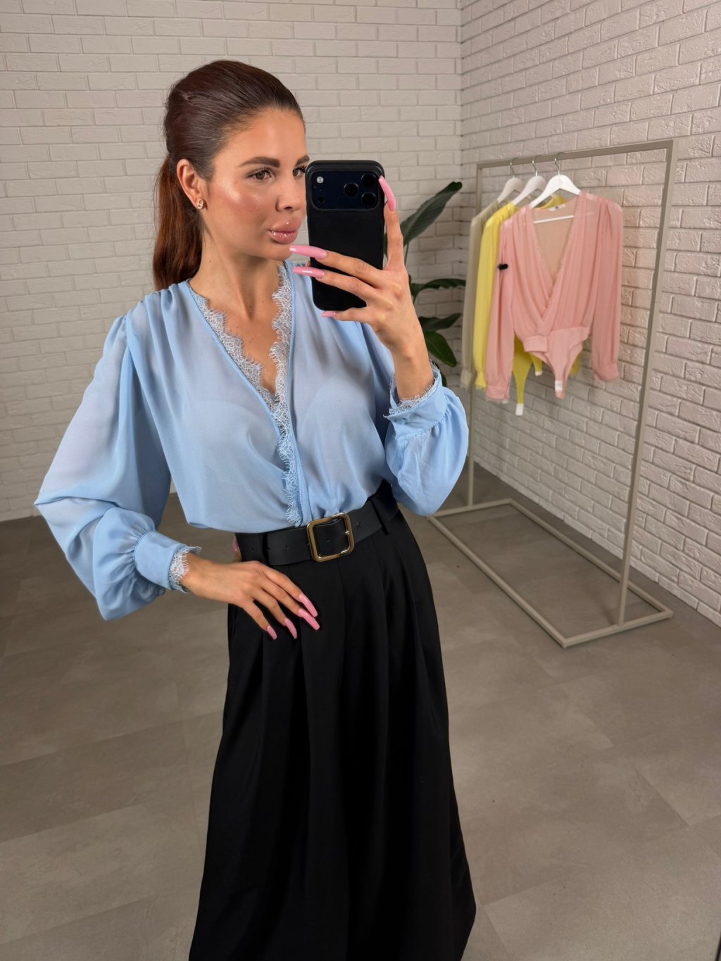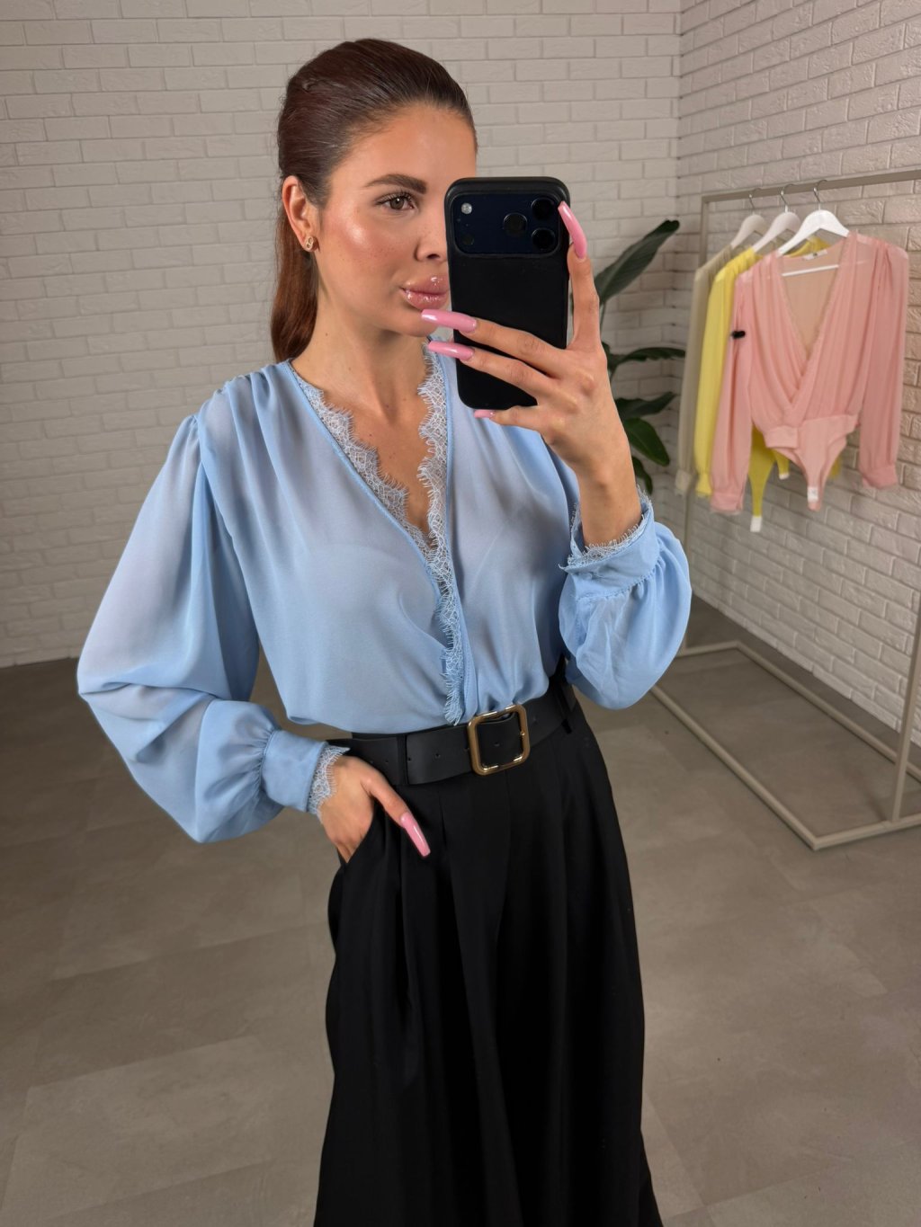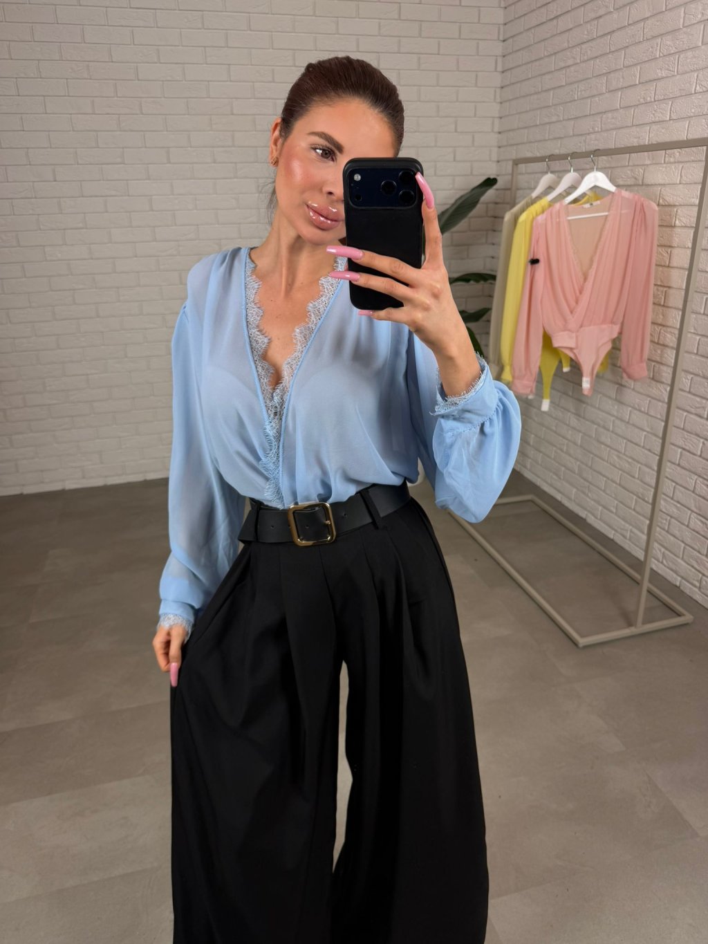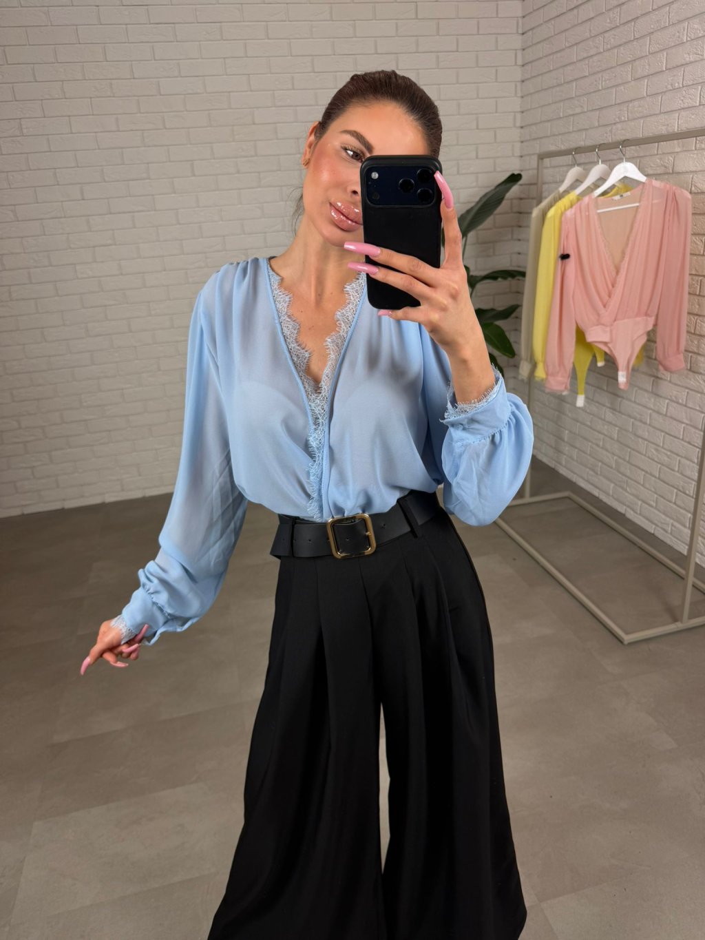 Body DAVIR je ušité z jemného šifonu, který působí něžně a velmi žensky. Největší výhodou je překládaný dekolt – můžeš si ho upravit přesně podle sebe, takže krásně sedne jak menšímu, tak i většímu poprsí a dekolt vždy vypadá upraveně. Tělo bodyčka má dvojitou vrstvu, díky čemuž se nemusíš bát prosvítání a klidně ho můžeš nosit i do práce nebo na formálnější příležitosti. Rukávy jsou jemně průsvitné a mírně rozšířené, takže na postavě vytvoří lehký, romantický efekt a zároveň jsou pohodlné i pro širší ruce – nic netlačí a krásně splývají. Body DAVIR velikostně sedne od S po XL a je to ten typ kousku, který okamžitě pozvedne celý outfit – stačí kalhoty, sukně nebo sako a působíš upraveně bez námahy.