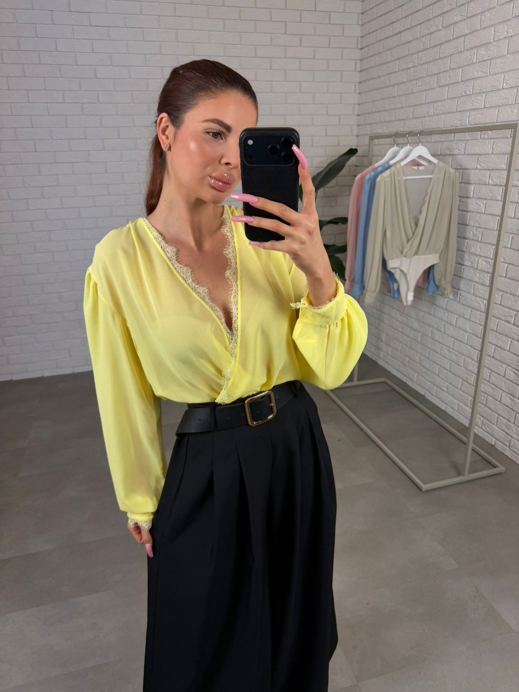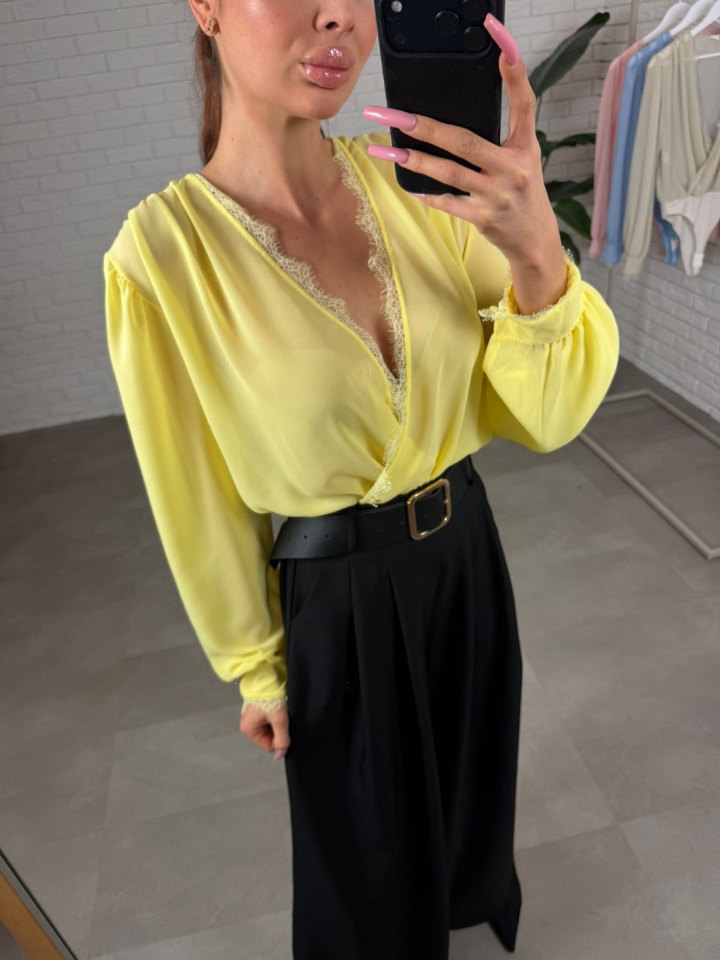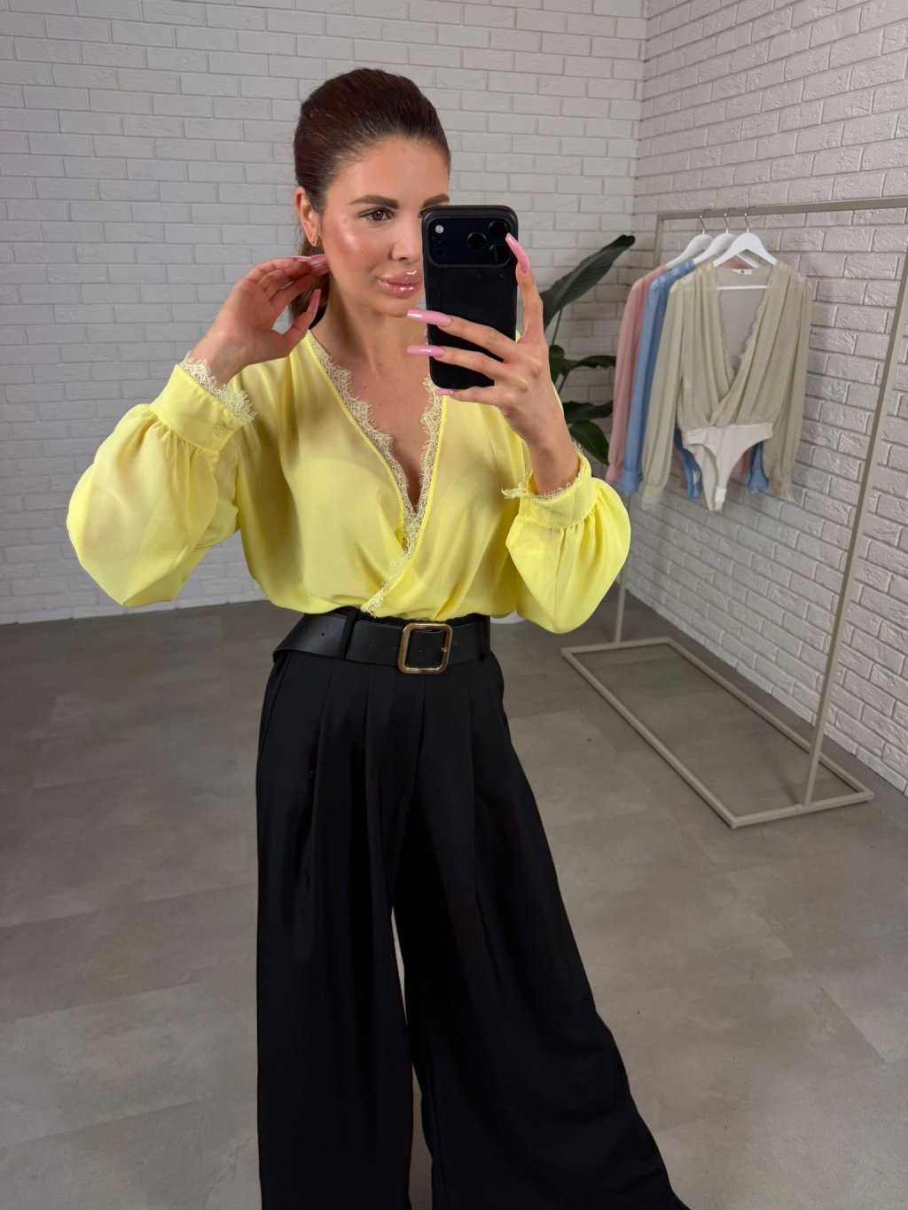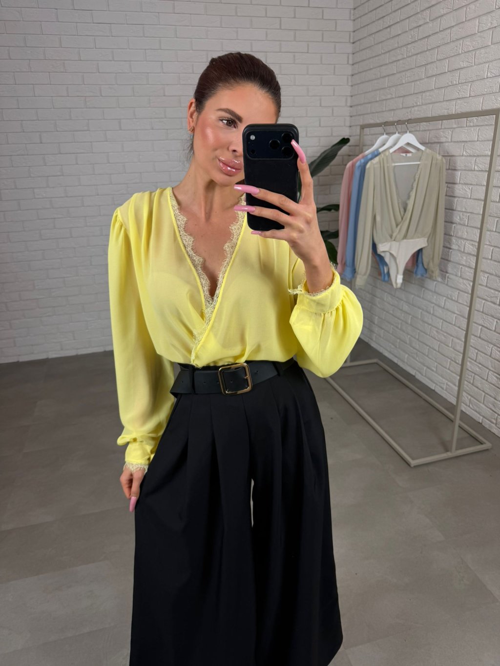 Body DAVIR je ušité z jemného šifonu, který působí něžně a velmi žensky. Největší výhodou je překládaný dekolt – můžeš si ho upravit přesně podle sebe, takže krásně sedne jak menšímu, tak i většímu poprsí a dekolt vždy vypadá upraveně. Tělo bodyčka má dvojitou vrstvu, díky čemuž se nemusíš bát prosvítání a klidně ho můžeš nosit i do práce nebo na formálnější příležitosti. Rukávy jsou jemně průsvitné a mírně rozšířené, takže na postavě vytvoří lehký, romantický efekt a zároveň jsou pohodlné i pro širší ruce – nic netlačí a krásně splývají. Body DAVIR velikostně sedne od S po XL a je to ten typ kousku, který okamžitě pozvedne celý outfit – stačí kalhoty, sukně nebo sako a působíš upraveně bez námahy.