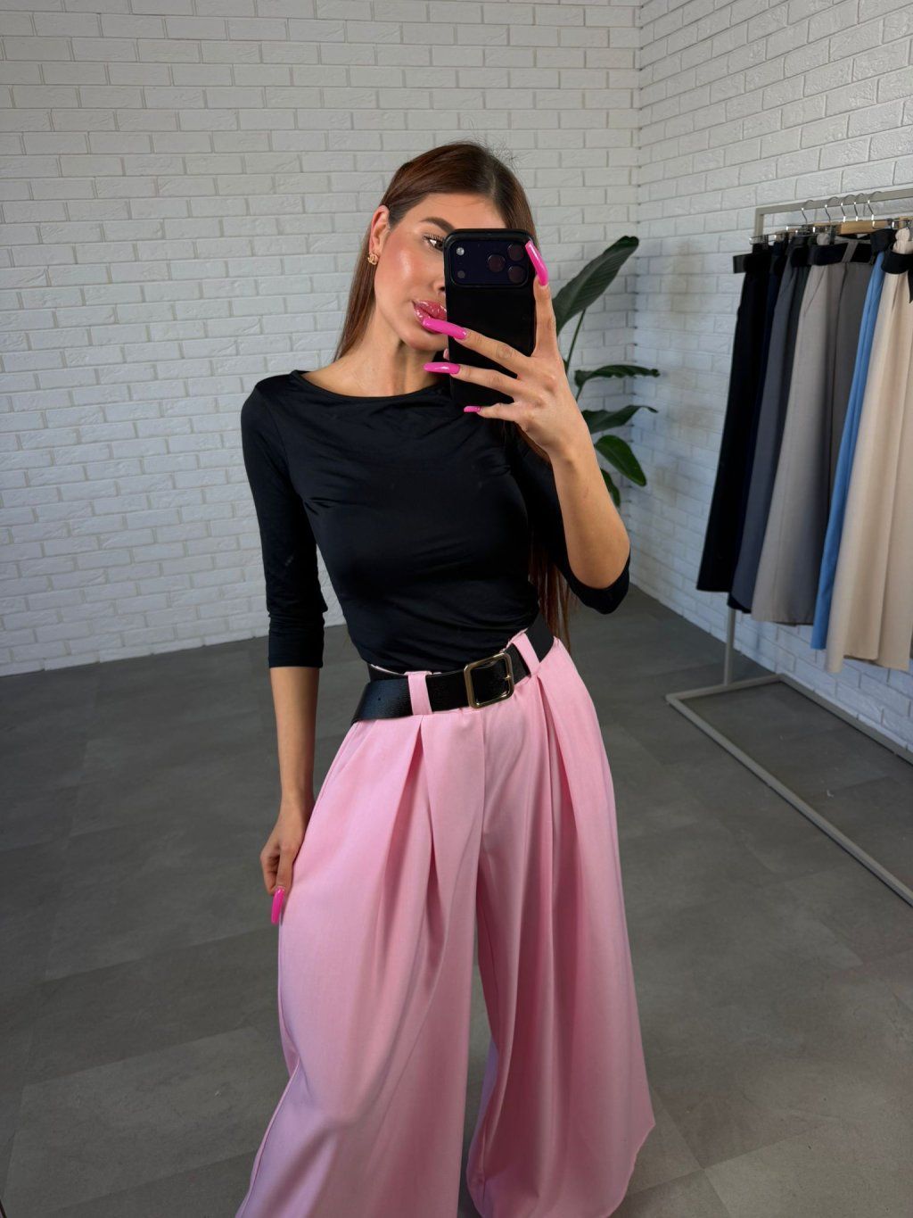 Vysoký pas s volnou elastickou gumou se přizpůsobí postavě a pohodlně sedne i na větší bříško. Součástí kalhot je také pásek, který zvýrazní pas a dodá celému outfitu elegantní detail. Praktickým prvkem jsou také kapsy po bocích.