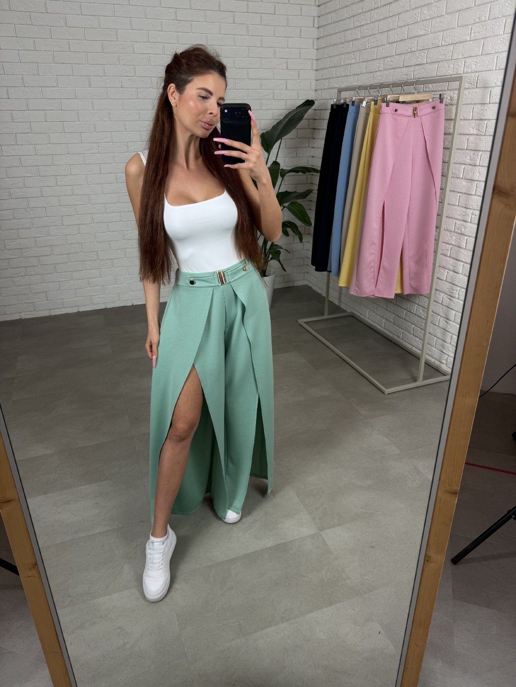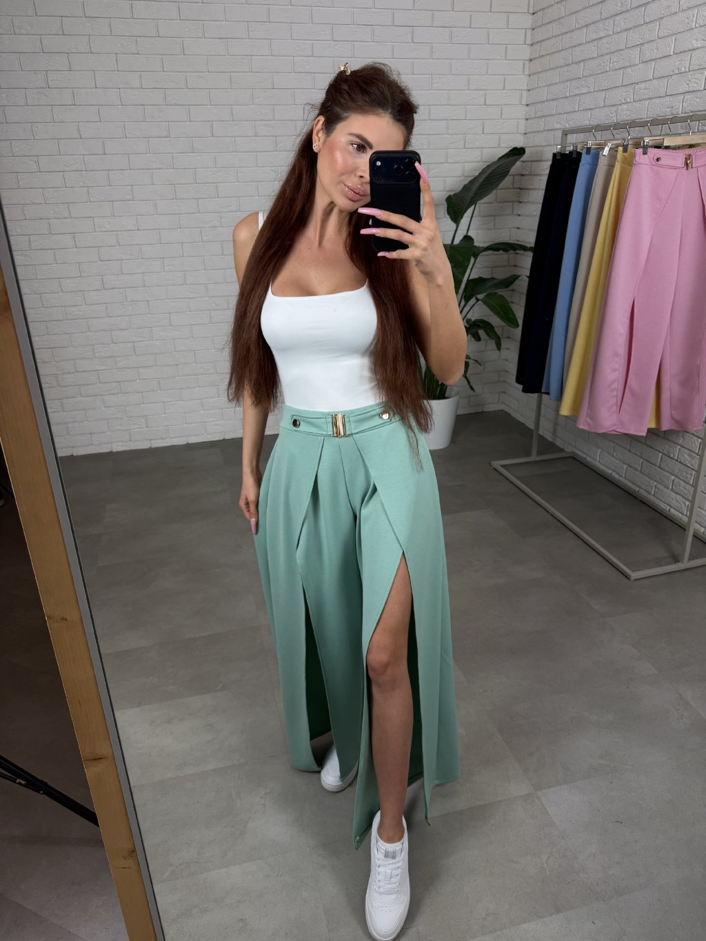 Originální kalhoty DARA s otevřeným střihem, jsou jedním z našich bestsellerů, které zaručeně oživí každý tvůj outfit. Tento kousek s netopýřím střihem je vyroben z jemného poloteplákového nemačkavého materiálu. Otevřený střih přidá outfitu lehkost a ženskost při chůzi. Zlaté elementy na pase jsou malým detailem, který kousek oživí a tvůj outfit doladí. Tento bestsellerový kousek je ideální když hledáš jedinečný a pohodlný kousek pro jarní a letní dny. Umíš je nosit sportovně i elegantně, bez problémů je zkombinuješ s punčochami i bez. Vynosíš je s teniskami na běžný den nebo s lodičkami pro speciální příležitost. Střih působí žensky a elegantně, ale zároveň se nemusíš bát, že budou příliš odhalující – otevření je řešeno tak, aby při pohybu vytvářelo lehkost, ale stále zakrylo vše, co má.