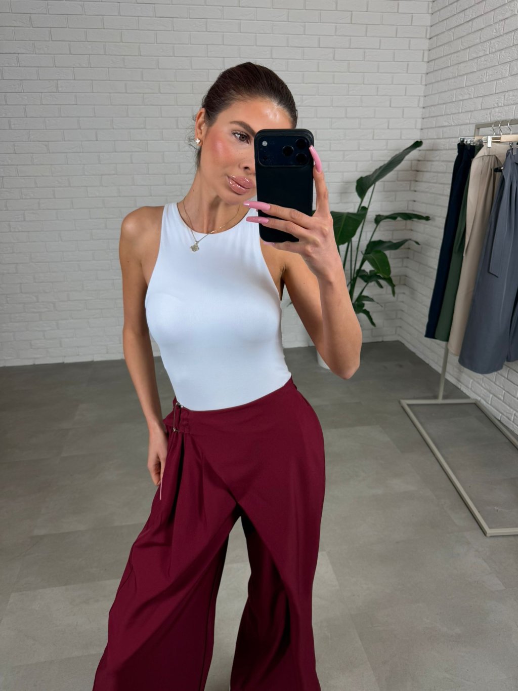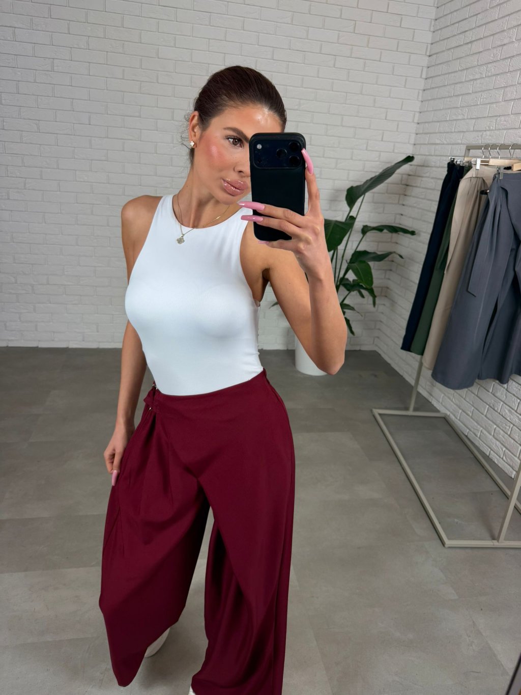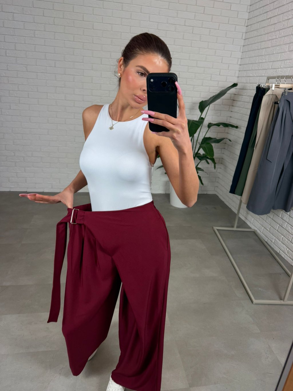 Kalhoty ELZA jsou vyrobeny z kvalitního nemačkavého materiálu, který si drží svůj tvar a působí upraveně po celý den. Volný ležérní střih přirozeně splývá na postavě a vytváří vyváženou siluetu bez zbytečného obepínání. Překládaný detail v přední části elegantně zakrývá oblast bříška a opticky zeštíhluje pas, díky čemuž jsou ideální zejména pro postavu typu jablko nebo pro každou ženu, která chce zakrýt bříško. Elastická guma v pase se pohodlně přizpůsobí postavě a regulovatelný pásek umožní přizpůsobit kalhoty přesně podle potřeby. Tento model je vhodný pro každodenní nošení i elegantnější kombinace a výškově sedne do 175 cm, velikostně od S po XL.