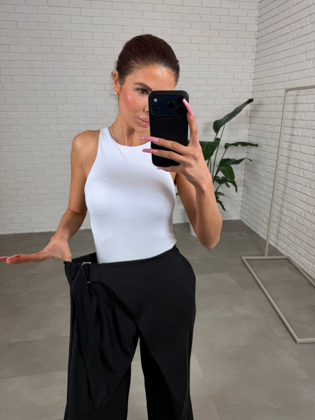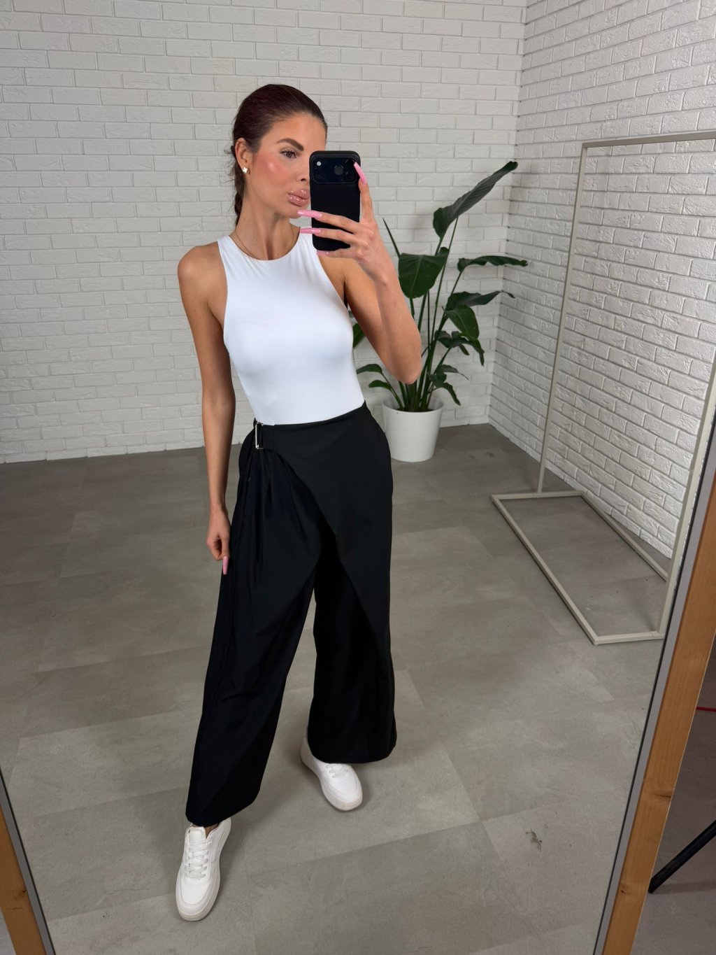 Kalhoty ELZA jsou vyrobeny z kvalitního nemačkavého materiálu, který si drží svůj tvar a působí upraveně po celý den. Volný ležérní střih přirozeně splývá na postavě a vytváří vyváženou siluetu bez zbytečného obepínání. Překládaný detail v přední části elegantně zakrývá oblast bříška a opticky zeštíhluje pas, díky čemuž jsou ideální zejména pro postavu typu jablko nebo pro každou ženu, která chce zakrýt bříško. Elastická guma v pase se pohodlně přizpůsobí postavě a regulovatelný pásek umožní přizpůsobit kalhoty přesně podle potřeby. Tento model je vhodný pro každodenní nošení i elegantnější kombinace a výškově sedne do 175 cm, velikostně od S po XL.