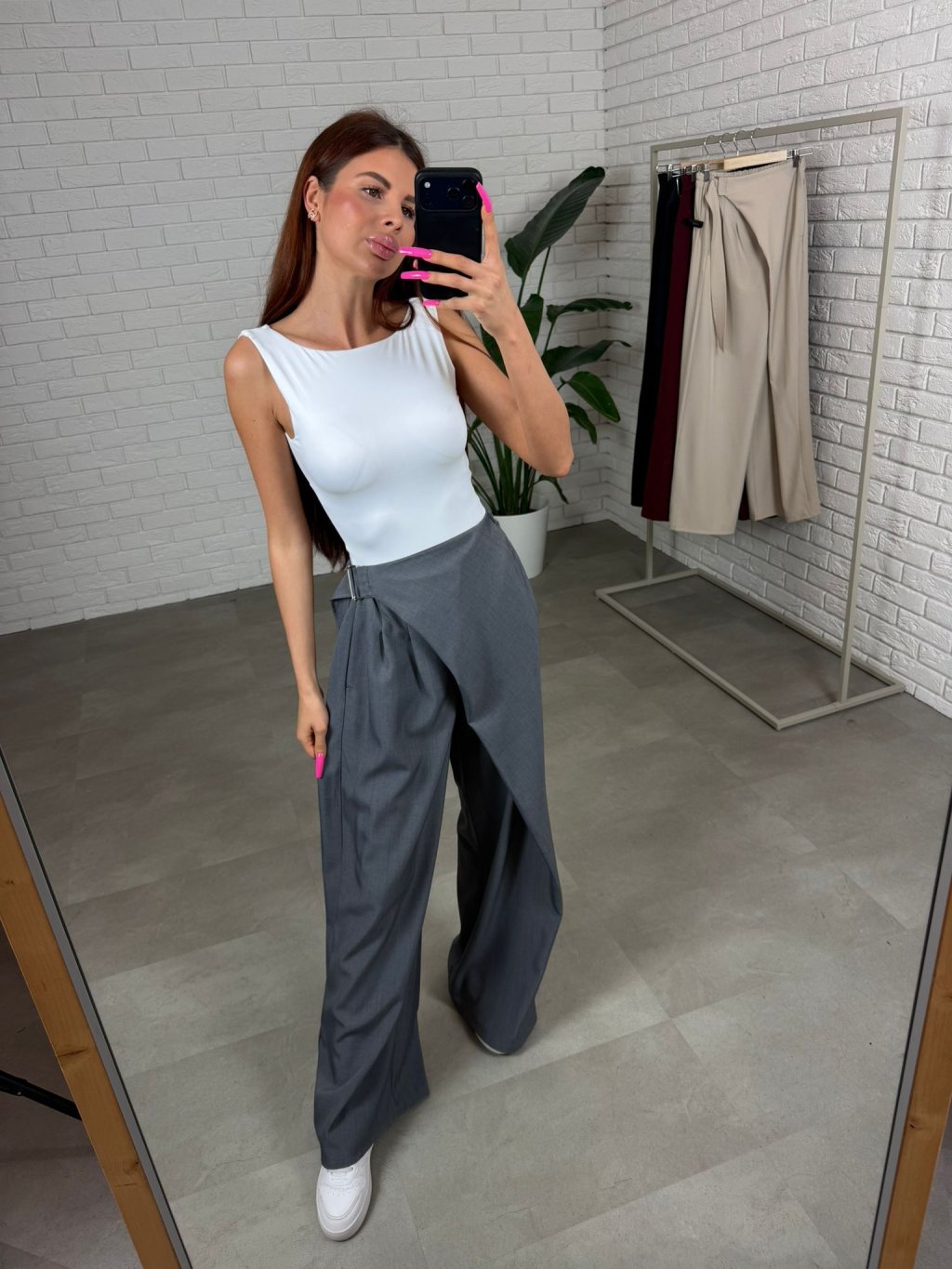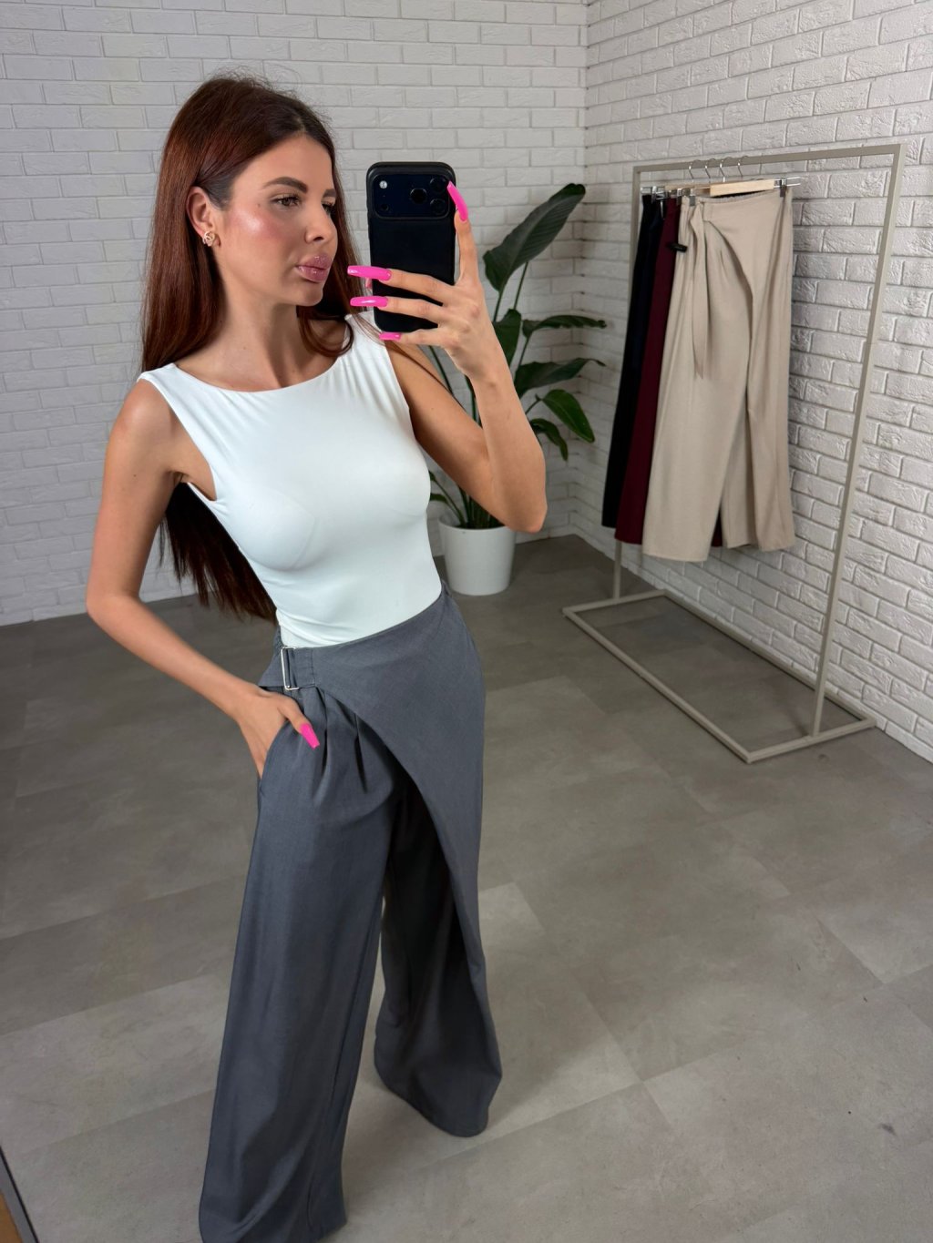 Kalhoty ELZA extra dlouhé jsou vyrobené z kvalitního nemačkavého materiálu, který si drží svůj tvar a působí upraveně během celého dne. Volný ležérní střih přirozeně splývá na postavě a vytváří vyváženou siluetu bez zbytečného obepínání.