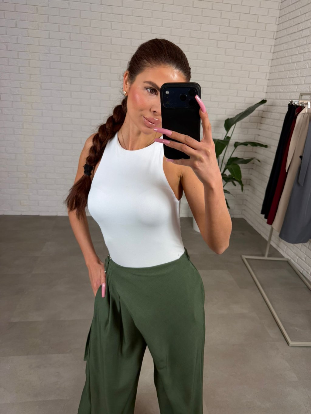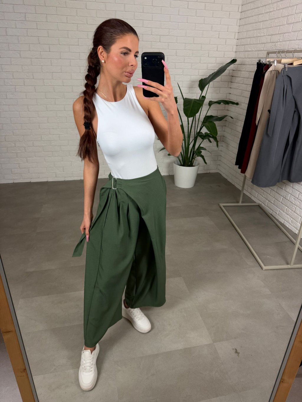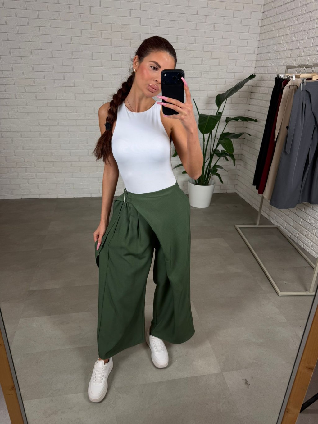 Kalhoty ELZA jsou vyrobeny z kvalitního nemačkavého materiálu, který si drží svůj tvar a působí upraveně po celý den. Volný ležérní střih přirozeně splývá na postavě a vytváří vyváženou siluetu bez zbytečného obepínání. Překládaný detail v přední části elegantně zakrývá oblast bříška a opticky zeštíhluje pas, díky čemuž jsou ideální zejména pro postavu typu jablko nebo pro každou ženu, která chce zakrýt bříško. Elastická guma v pase se pohodlně přizpůsobí postavě a regulovatelný pásek umožní přizpůsobit kalhoty přesně podle potřeby. Tento model je vhodný pro každodenní nošení i elegantnější kombinace a výškově sedne do 175 cm, velikostně od S po XL.