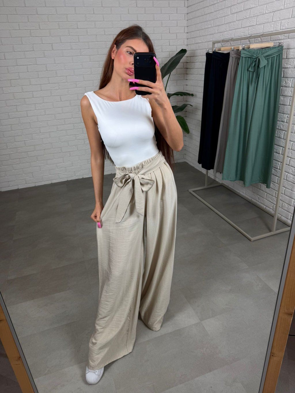 Kalhoty LILIANA extra dlouhé béžové