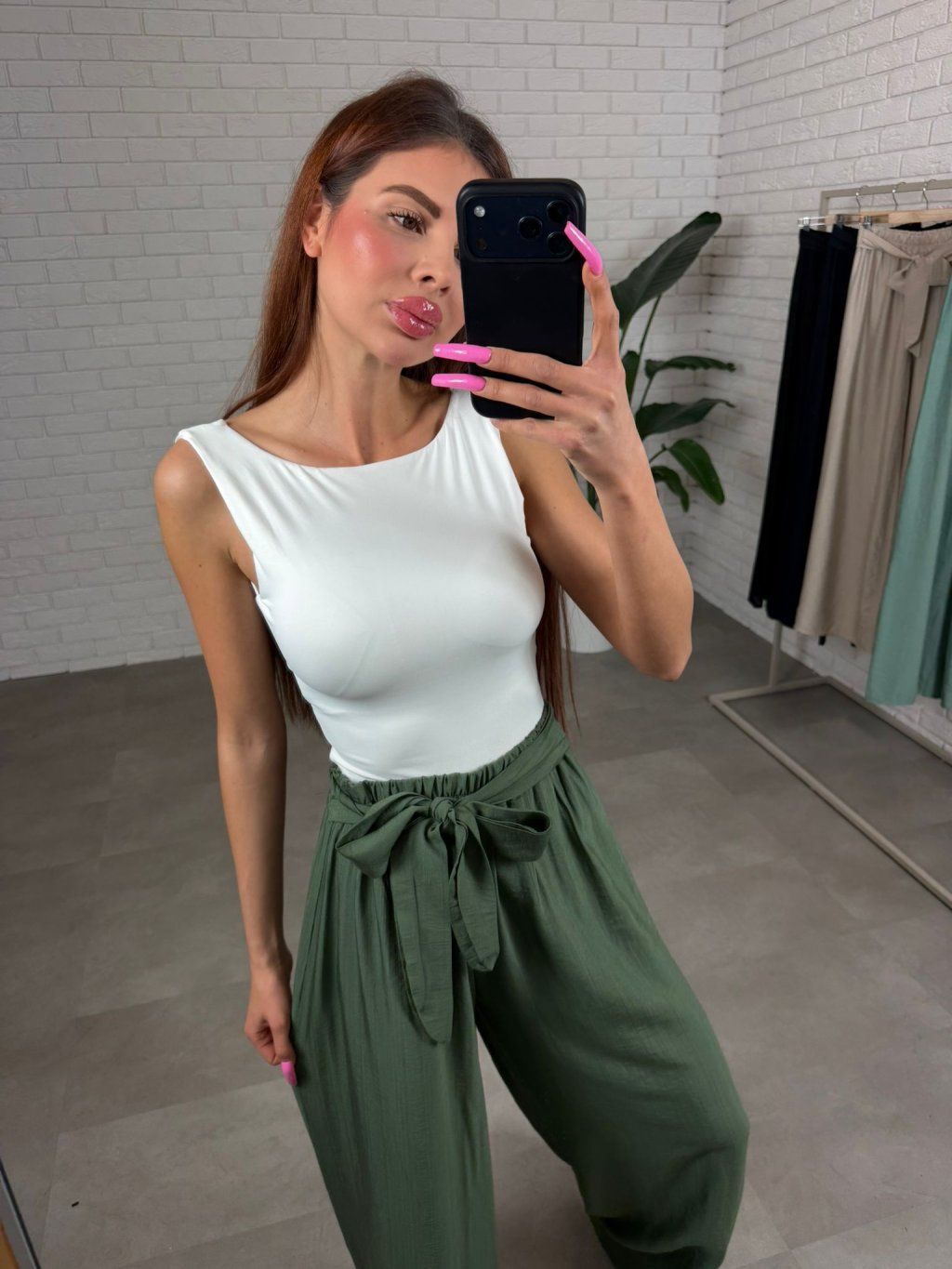 Kalhoty LILIANA extra dlouhé olivové