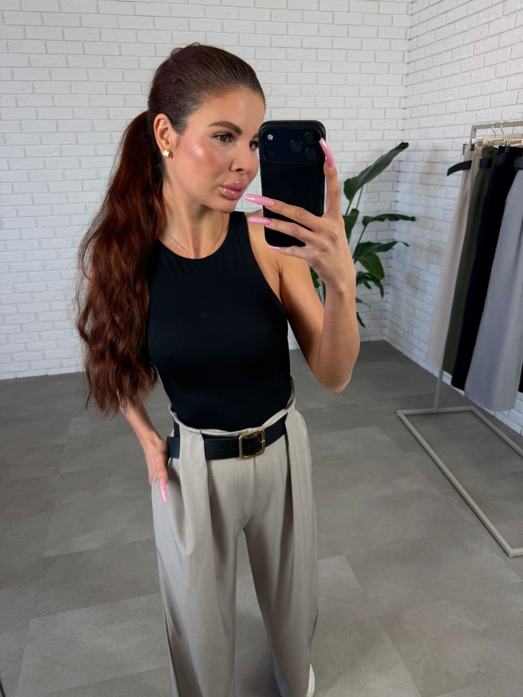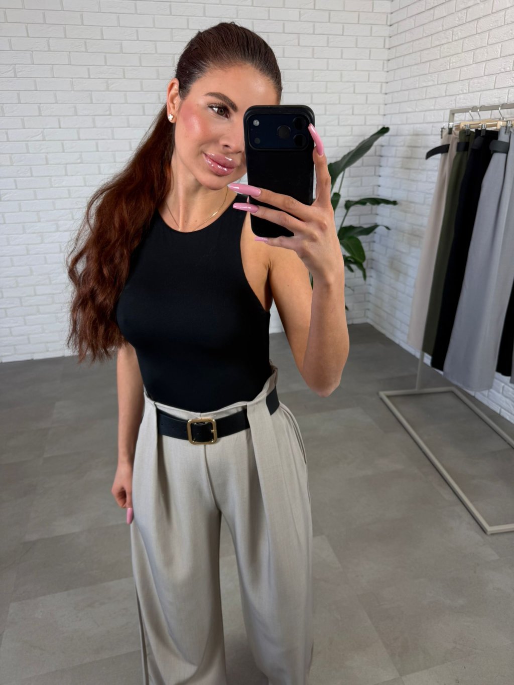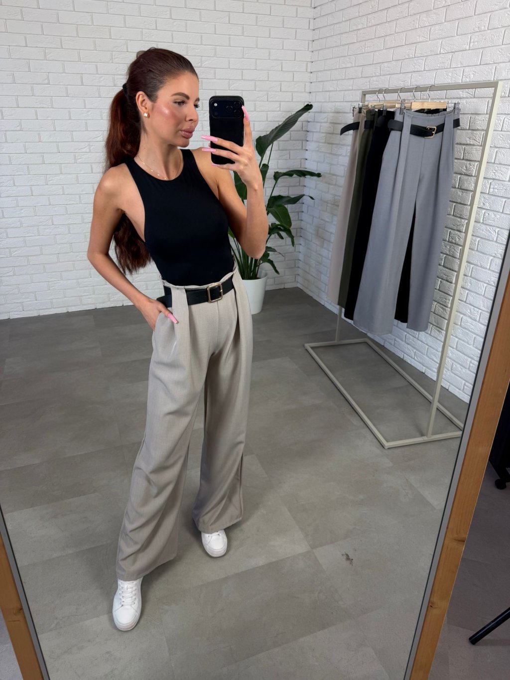 Elegantní kalhoty jsou navrženy tak, aby krásně zvýraznily pas a zároveň vytvořily prodlouženou siluetu. Vysoký pas opticky zeštíhluje postavu a dodává outfitu upravený a moderní vzhled, který působí žensky a sebevědomě při každém kroku. Materiál je kvalitní, nekrčivý a příjemný na dotek, takže kalhoty si zachovávají svůj elegantní vzhled během celého dně.