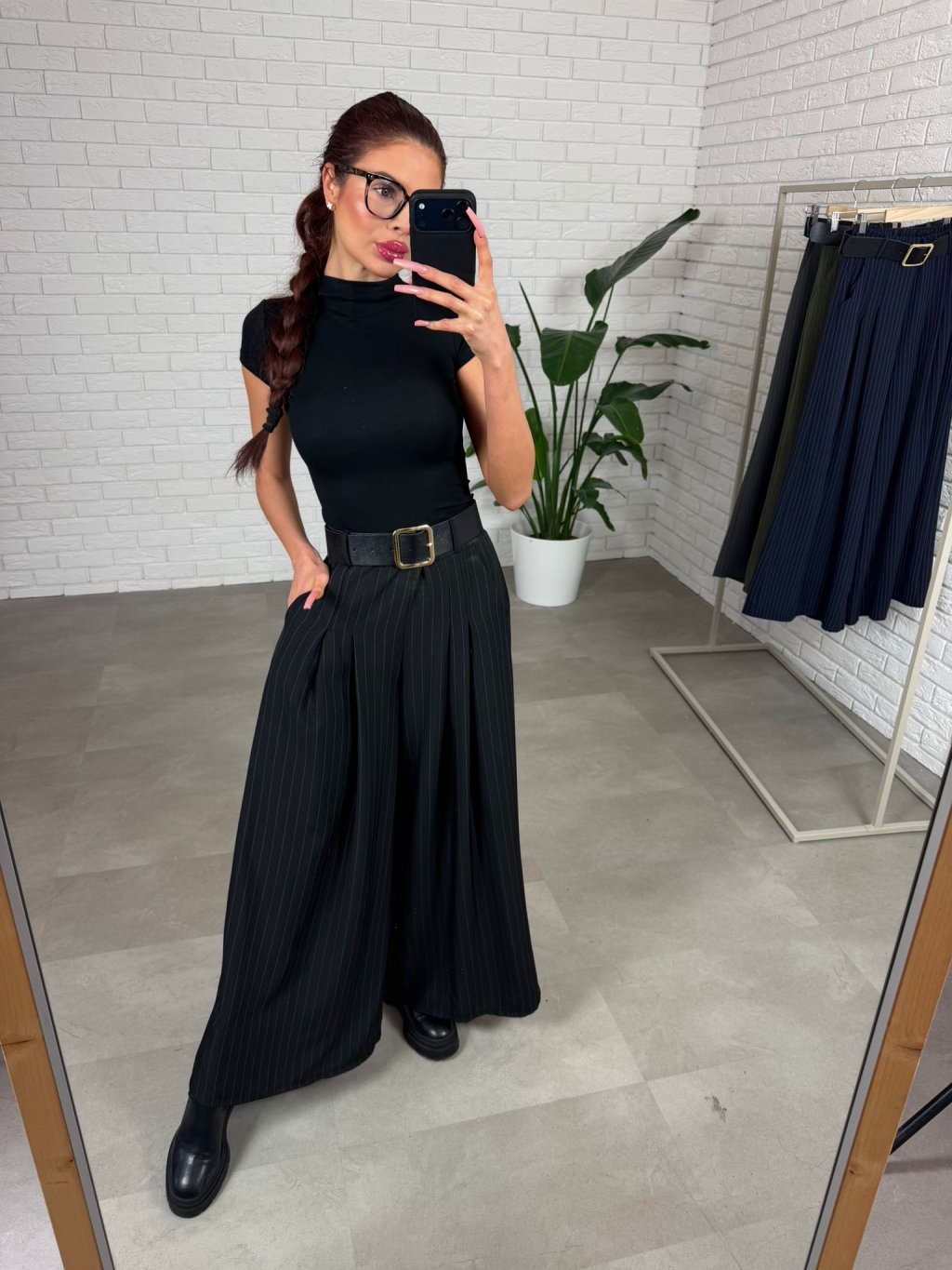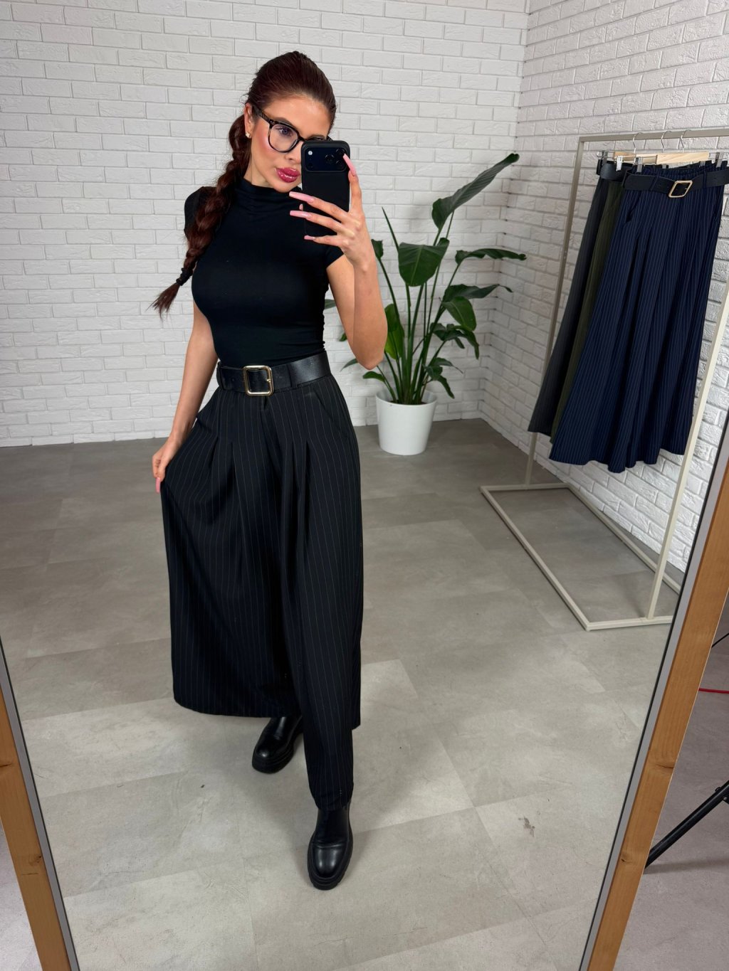 Kalhoty NORIO jsou pohodlné a stylové zároveň, vhodné i pro větší křivky. Díky elastickému pasu se krásně přizpůsobí postavě. Opasek, je součástí balení. Páskavý vzor opticky zeštíhluje, zatímco skládaný detail v přední části dodává elegantní vzhled. Jsou bohaté na materiál, takže jemně zamaskují případné nedokonalosti, mají praktické boční kapsy a jsou vhodné pro výšku až do 180 cm. Vhodné pro velikosti od S po XL, ideální pro běžné nošení i příležitosti, kde chceš vypadat upraveně a cítit se pohodlně.