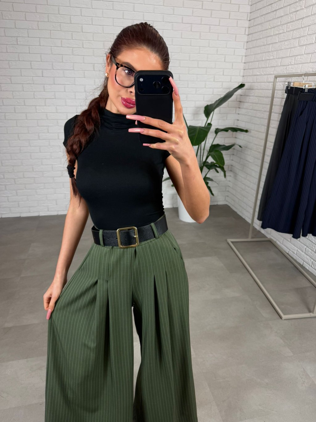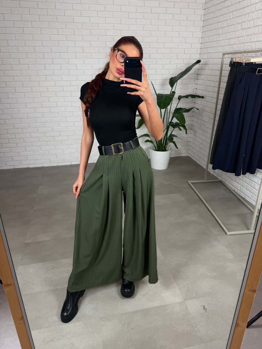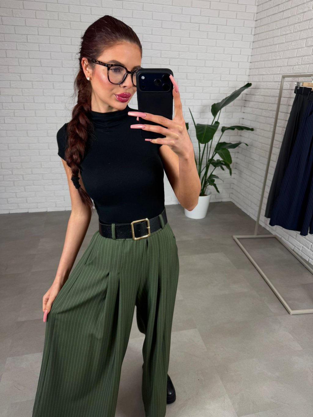 Kalhoty NORIO jsou pohodlné a stylové zároveň, vhodné i pro větší křivky. Díky elastickému pasu se krásně přizpůsobí postavě. Opasek, je součástí balení. Páskavý vzor opticky zeštíhluje, zatímco skládaný detail v přední části dodává elegantní vzhled. Jsou bohaté na materiál, takže jemně zamaskují případné nedokonalosti, mají praktické boční kapsy a jsou vhodné pro výšku až do 180 cm. Vhodné pro velikosti od S po XL, ideální pro běžné nošení i příležitosti, kde chceš vypadat upraveně a cítit se pohodlně.