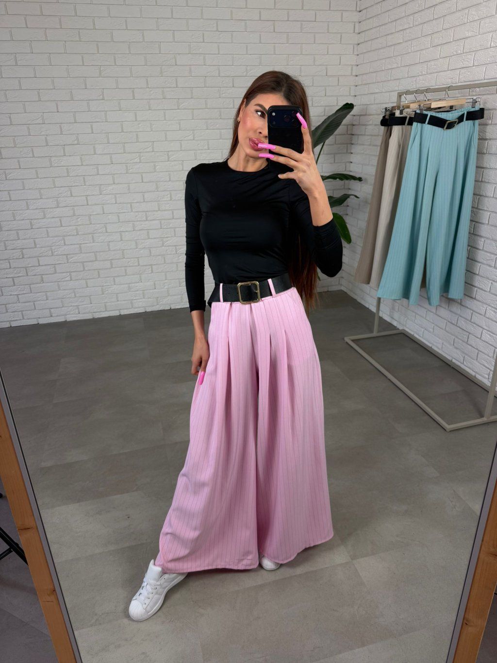 Kalhoty NORIO jsou ušity v ležérním, volnějším střihu, který krásně sedne i na větší křivky a zároveň jemně zamaskuje případné nedokonalosti v oblasti boků či stehen. Pohodlný elastický pas se přizpůsobí postavě, aniž by ses cítili stísněně. Součástí je také opasek, který zvýrazní siluetu. Páskavý vzor opticky zeštíhluje a přední skládání dodává kalhotám elegantnější dojem, díky kterému je bez problémů využiješ i na dny, kdy chceš působit upraveněji. Praktické boční kapsy jsou detail, který oceníš při každodenním nošení. Výškově jsou vhodné do 170 cm a velikostně sedí na konfekční velikosti od S po XL.