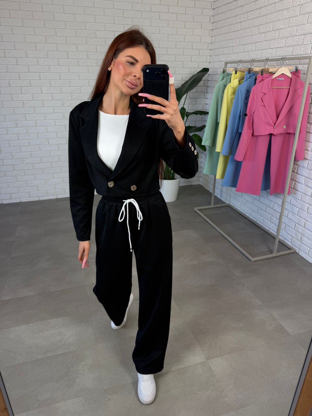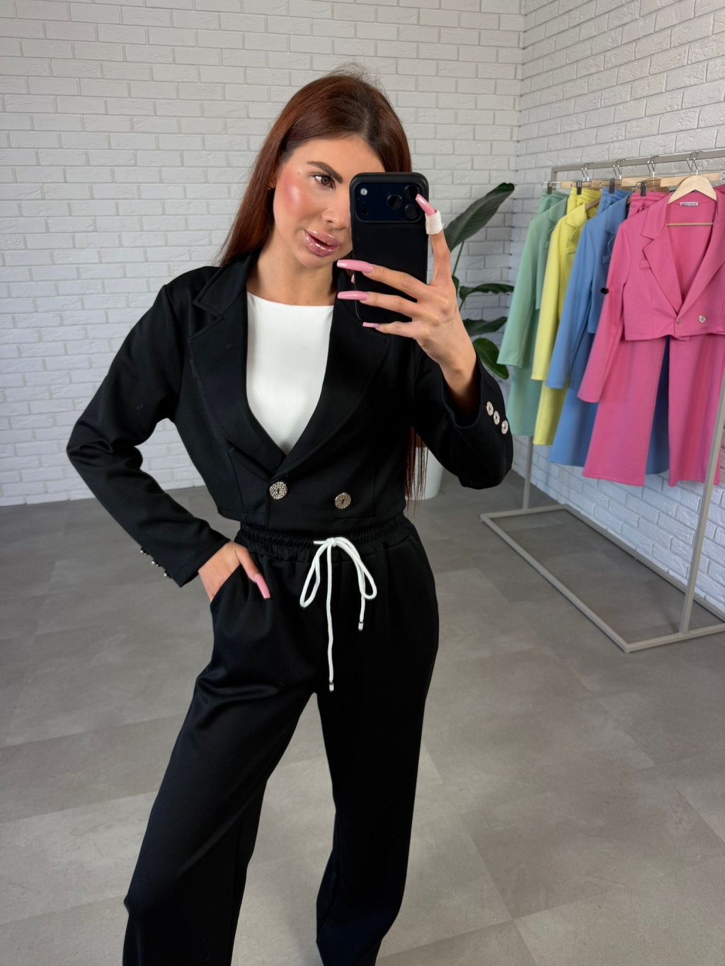 Komplet MELIOR je moderní sportovně-elegantní kousek, který spojuje pohodlí tepláků s upraveným vzhledem elegantního outfitu. Vyroben je z kvalitního poloteplákového materiálu, který je příjemný na nošení, měkký na dotek a zároveň drží pěkný tvar během celého dne. Komplet se skládá z kratšího saka, které sahá přibližně po pas a krásně zvýrazňuje siluetu. Zapínání je řešeno elegantními knoflíčky a stejné ozdobné knoflíčky se nacházejí i na rukávech, což dodává modelu stylový detail. Kalhoty mají rovný mírně rozšířený střih, který působí velmi elegantně a zároveň poskytuje maximální pohodlí při pohybu. Po bocích se nacházejí praktické hluboké kapsy, které využiješ při každodenním nošení. Komplet MELIOR je ideální na běžné dny, setkání i cestování, když chceš vypadat upraveně, ale stále se cítit pohodlně. Velikostně sedne na konfekční velikosti od S po L a výškově je vhodný pro kočky přibližně do 175 cm.