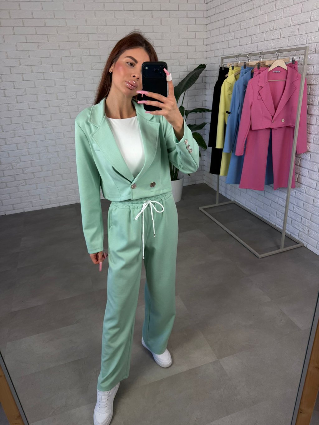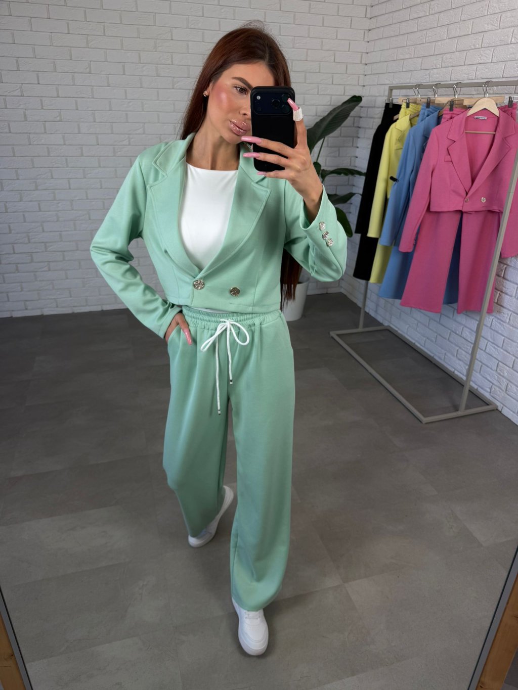 Komplet MELIOR je moderní sportovně-elegantní kousek, který spojuje pohodlí tepláků s upraveným vzhledem elegantního outfitu. Vyroben je z kvalitního poloteplákového materiálu, který je příjemný na nošení, měkký na dotek a zároveň drží pěkný tvar během celého dne. Komplet se skládá z kratšího saka, které sahá přibližně po pas a krásně zvýrazňuje siluetu. Zapínání je řešeno elegantními knoflíčky a stejné ozdobné knoflíčky se nacházejí i na rukávech, což dodává modelu stylový detail. Kalhoty mají rovný mírně rozšířený střih, který působí velmi elegantně a zároveň poskytuje maximální pohodlí při pohybu. Po bocích se nacházejí praktické hluboké kapsy, které využiješ při každodenním nošení. Komplet MELIOR je ideální na běžné dny, setkání i cestování, když chceš vypadat upraveně, ale stále se cítit pohodlně. Velikostně sedne na konfekční velikosti od S po L a výškově je vhodný pro kočky přibližně do 175 cm.