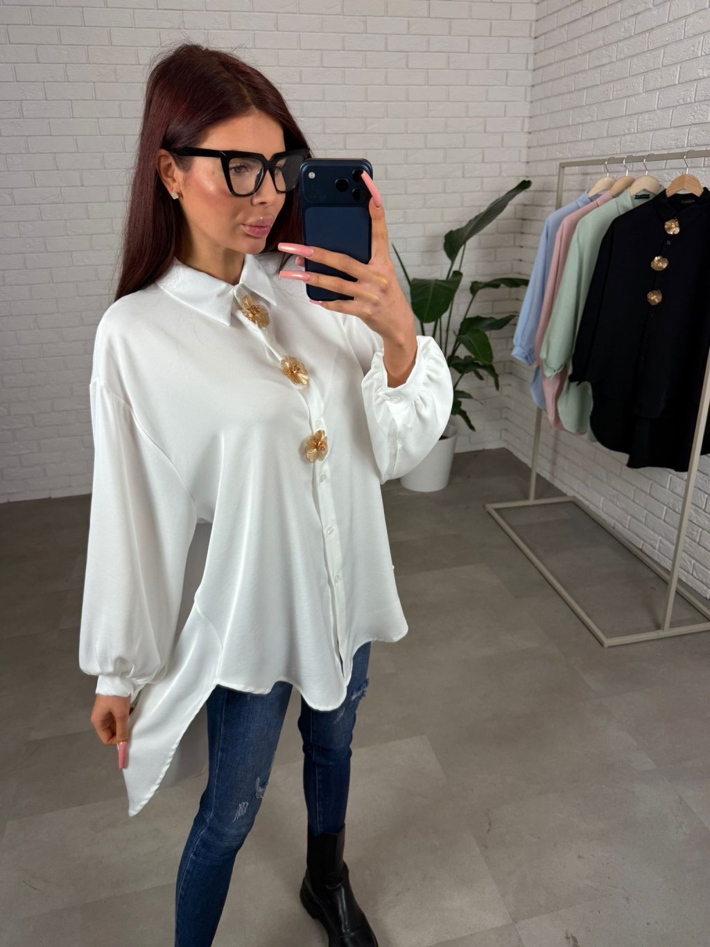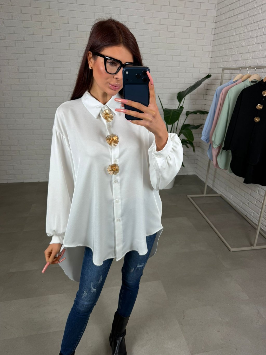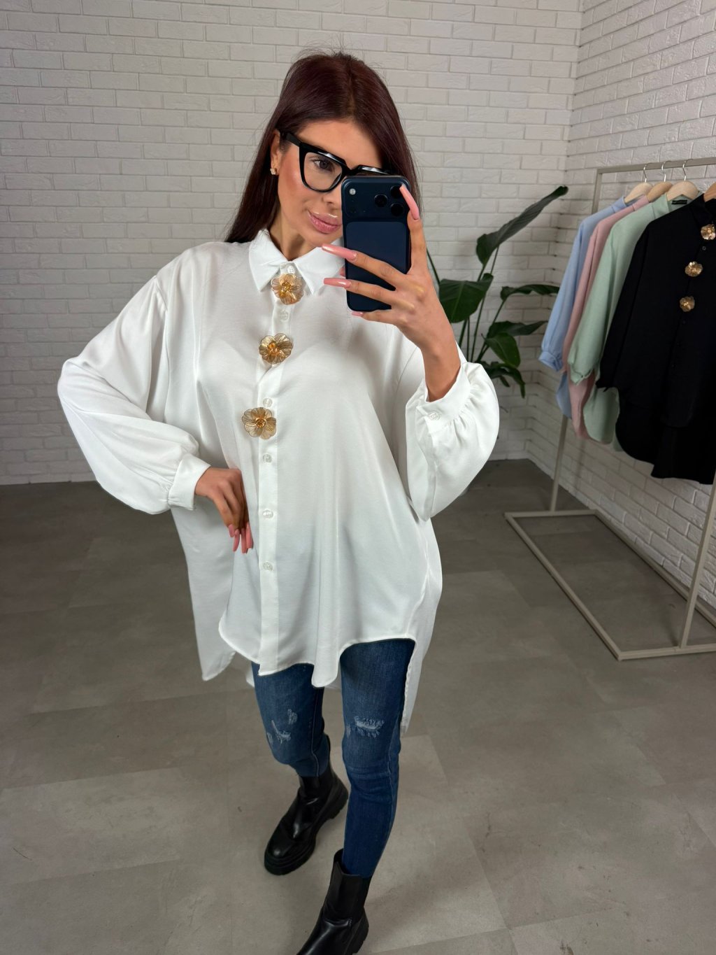 Košile ADAM prodloužená s ozdobnými kvítky, které lze i odepnout. Košile je v prémiové kvalitě. Ve volném rozšířeném střihu. Zadní část prodloužená, asymetrický střih. Vhodné i na vyšší kočky. Velmi nadčasový kousek, který nesmí chybět ve tvém šatníku. Sedne na velikost od XS po XL.