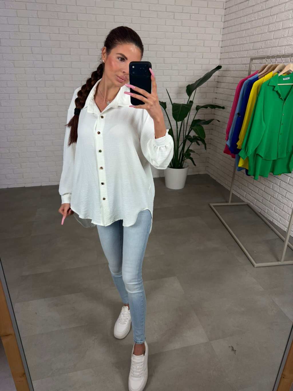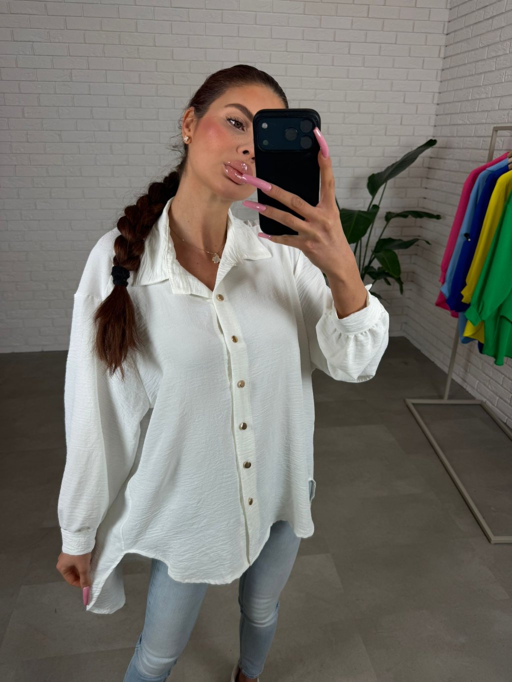 Košile AIVA je rychlá záchrana na dny, kdy chceš vypadat upraveně bez námahy. Má volný, padavý střih a výrazné barvy, které na postavě krásně vyniknou, zejména v konfekci L a XL. Materiál se vůbec nemačká, takže i po celém dni vypadá stále svěže. Rukávy jsou volnější, na spodku zúžené s knoflíkem, který se přizpůsobí každému obvodu ruky, a zlaté knoflíky dodají košili elegantní detail. Vpředu je kratší a vzadu prodloužená, proto se skvěle nosí i částečně zastrčená. Velikostně sedí od S po XL.