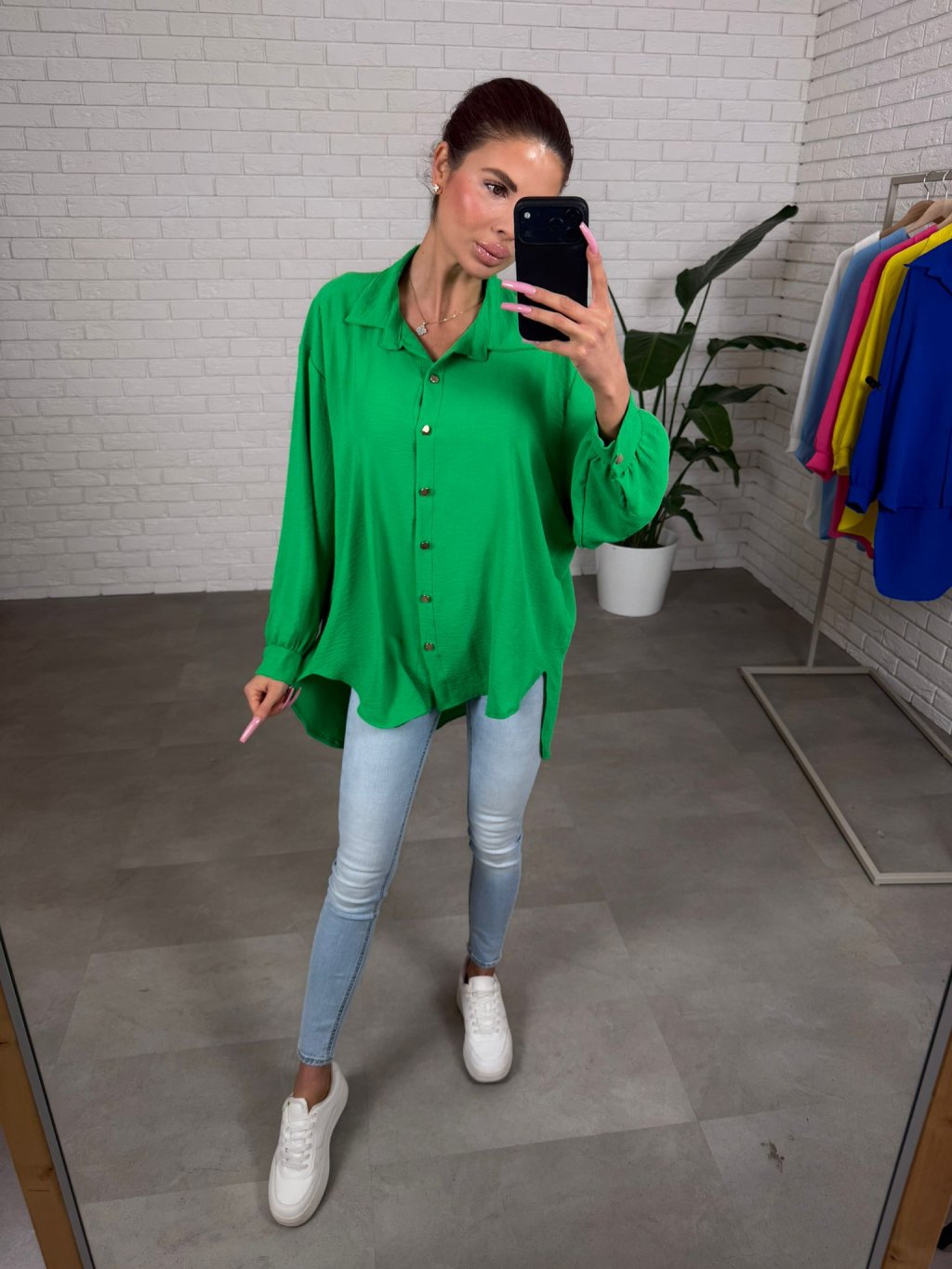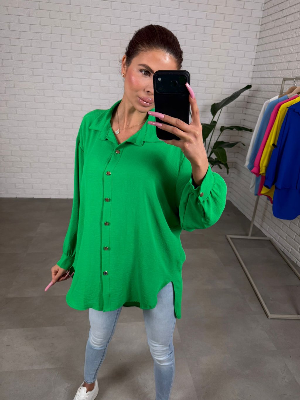 Košile AIVA je rychlá záchrana na dny, kdy chceš vypadat upraveně bez námahy. Má volný, padavý střih a výrazné barvy, které na postavě krásně vyniknou, zejména v konfekci L a XL. Materiál se vůbec nemačká, takže i po celém dni vypadá stále svěže. Rukávy jsou volnější, na spodku zúžené s knoflíkem, který se přizpůsobí každému obvodu ruky, a zlaté knoflíky dodají košili elegantní detail. Vpředu je kratší a vzadu prodloužená, proto se skvěle nosí i částečně zastrčená. Velikostně sedí od S po XL.
