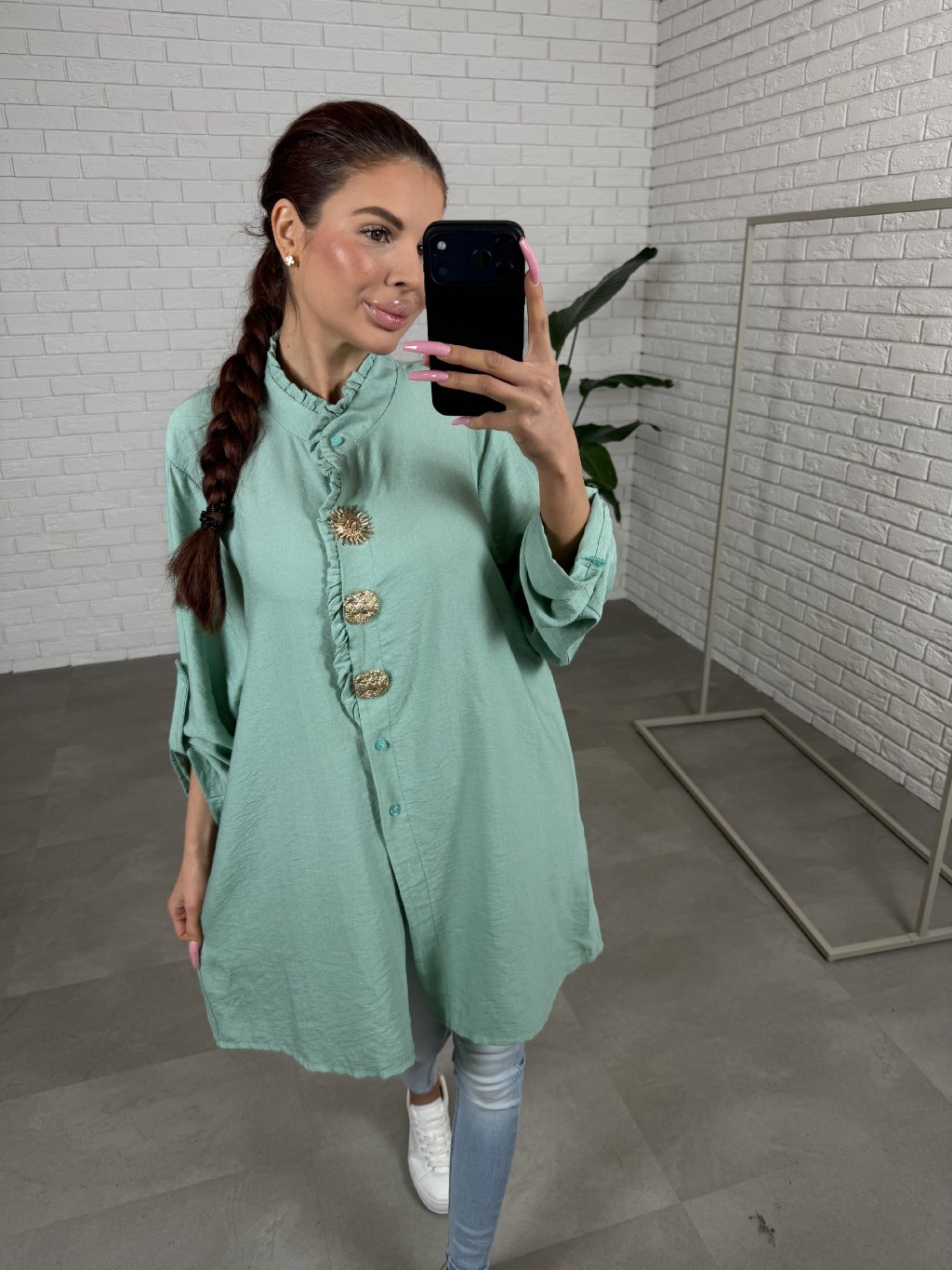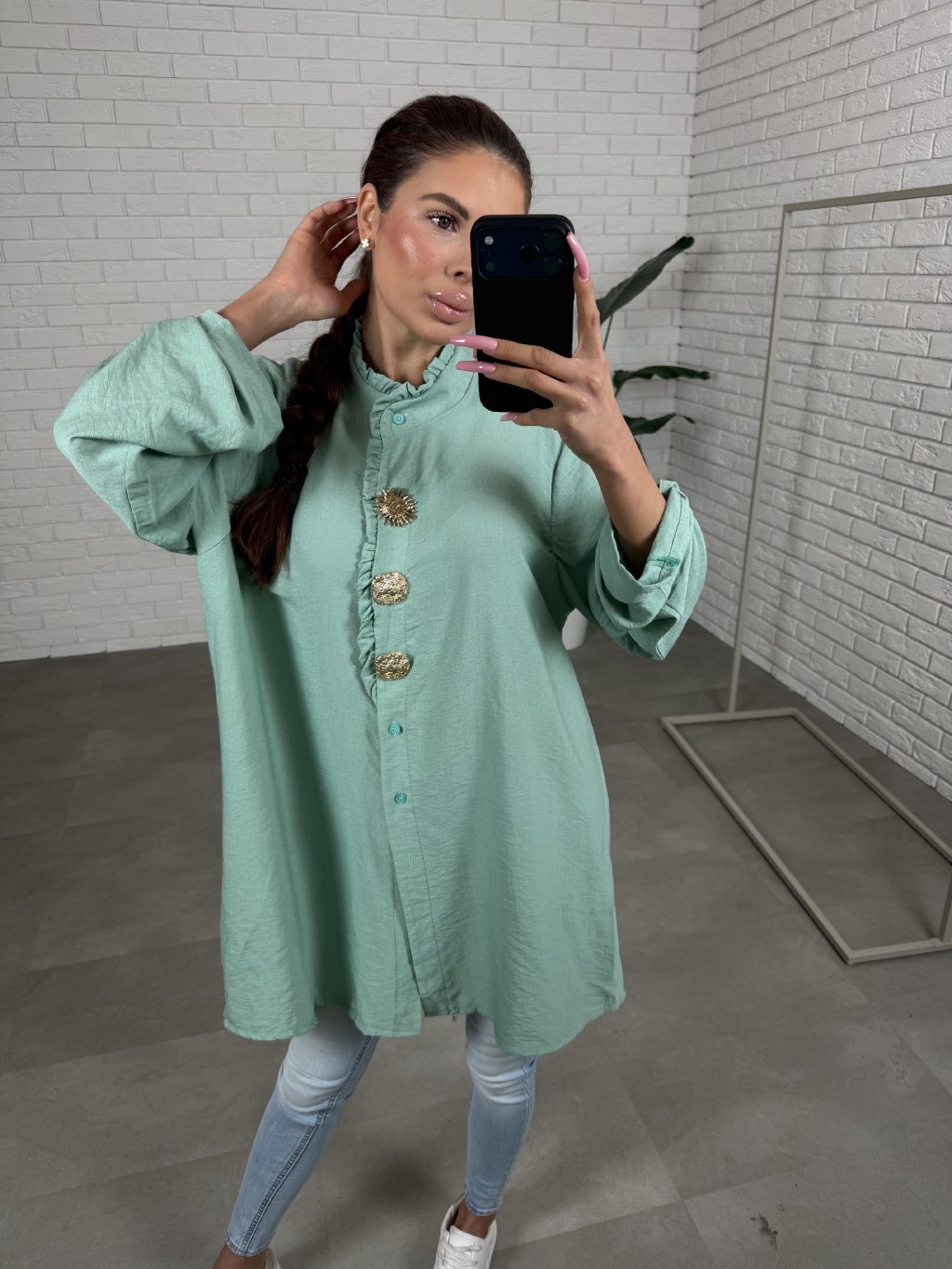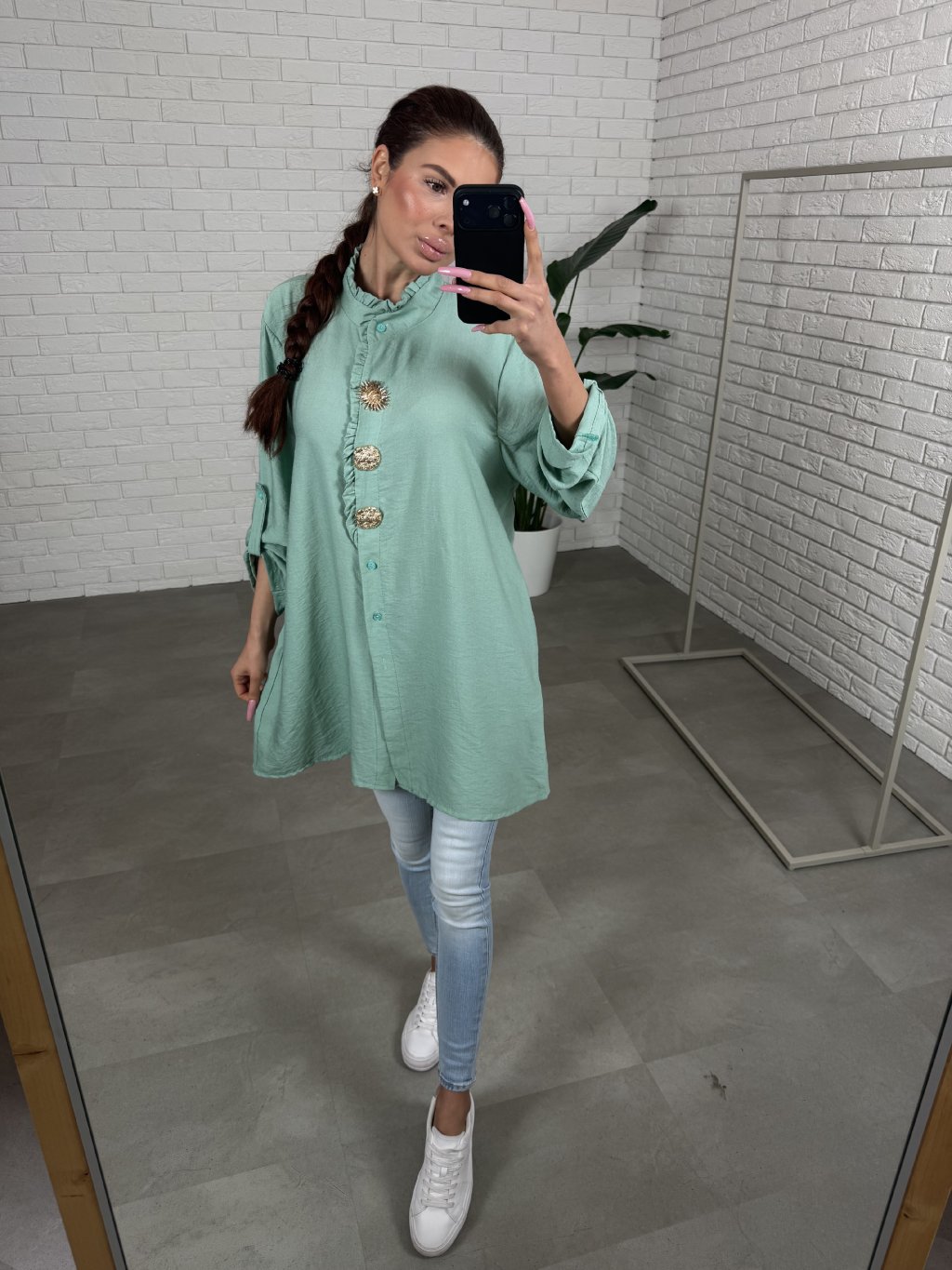 Košile ARTOS je volná ležérní košile, která je ideální volbou na dny, kdy chceš spojit pohodlí se stylovým vzhledem. Je vyrobena z příjemného materiálu, který je měkký na dotek a krásně splývá na postavě bez nepříjemného obepínání. Prodloužený střih působí moderně, přirozeně zakryje oblast boků a zároveň je vhodný i pro vyšší postavy. Charakteristickým detailem jsou tři ozdobné spony, které dodávají košili zajímavý a elegantní nádech, přičemž je můžeš podle nálady jednoduše odepnout a přizpůsobit si vzhled. ARTOS se skvěle kombinuje s legínami, kalhotami i džínami a je ideálním kouskem na běžné nošení i upravenější každodenní outfit. Velikostně sedí na konfekční velikosti od S po XL.