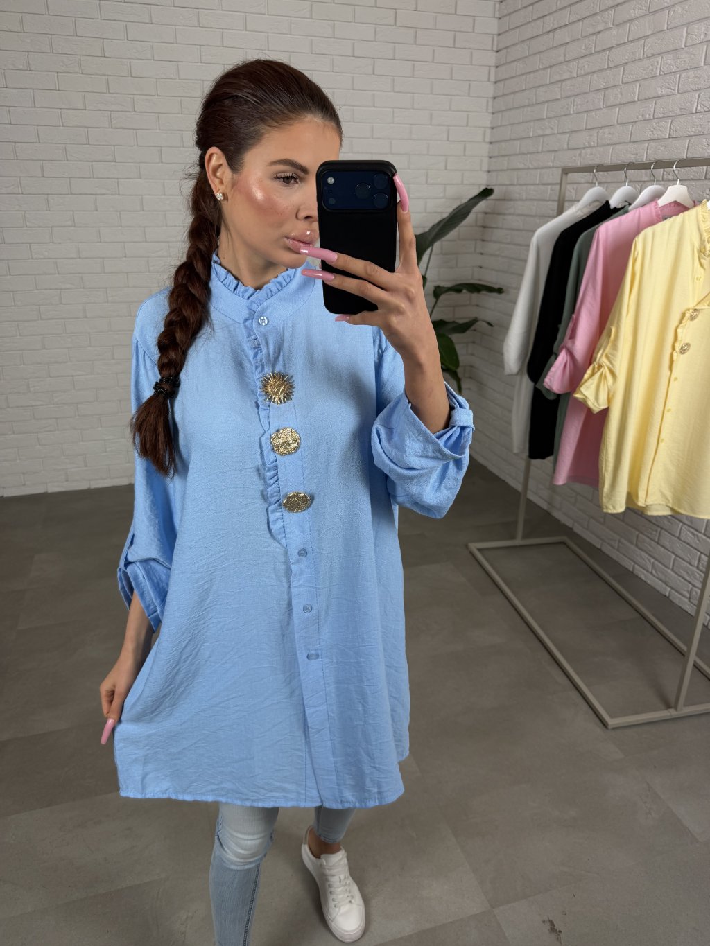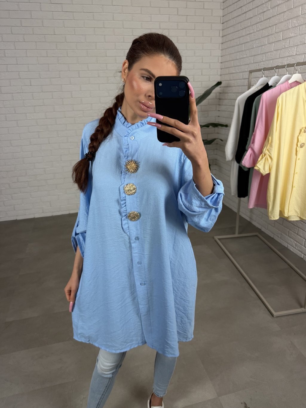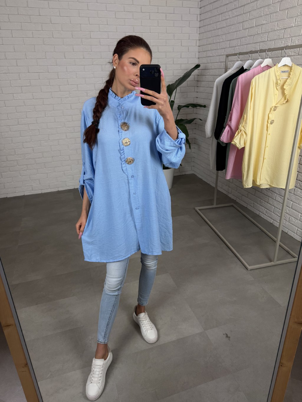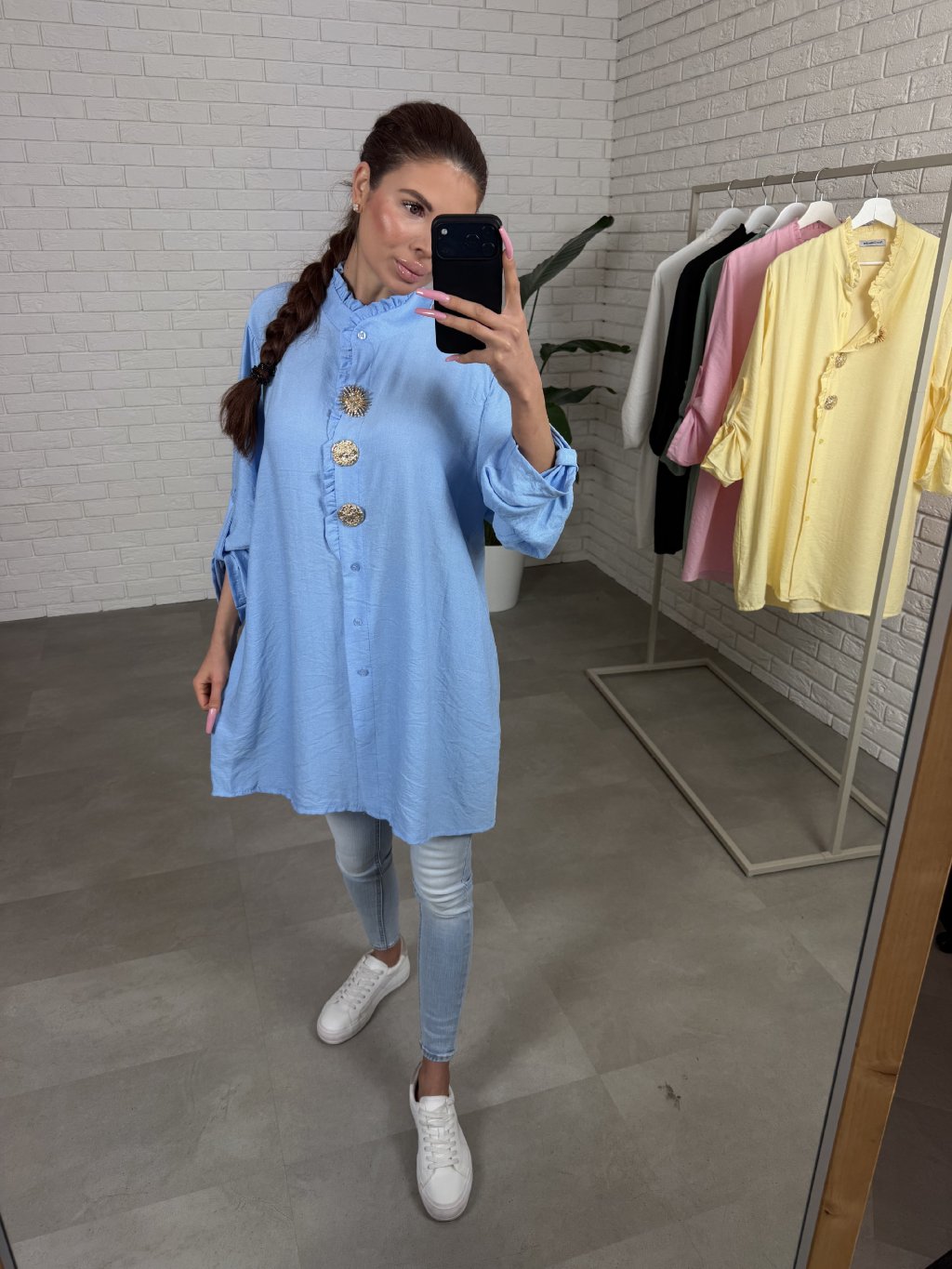 Košile ARTOS je volná ležérní košile, která je ideální volbou na dny, kdy chceš spojit pohodlí se stylovým vzhledem. Je vyrobena z příjemného materiálu, který je měkký na dotek a krásně splývá na postavě bez nepříjemného obepínání. Prodloužený střih působí moderně, přirozeně zakryje oblast boků a zároveň je vhodný i pro vyšší postavy. Charakteristickým detailem jsou tři ozdobné spony, které dodávají košili zajímavý a elegantní nádech, přičemž je můžeš podle nálady jednoduše odepnout a přizpůsobit si vzhled. ARTOS se skvěle kombinuje s legínami, kalhotami i džínami a je ideálním kouskem na běžné nošení i upravenější každodenní outfit. Velikostně sedí na konfekční velikosti od S po XL.