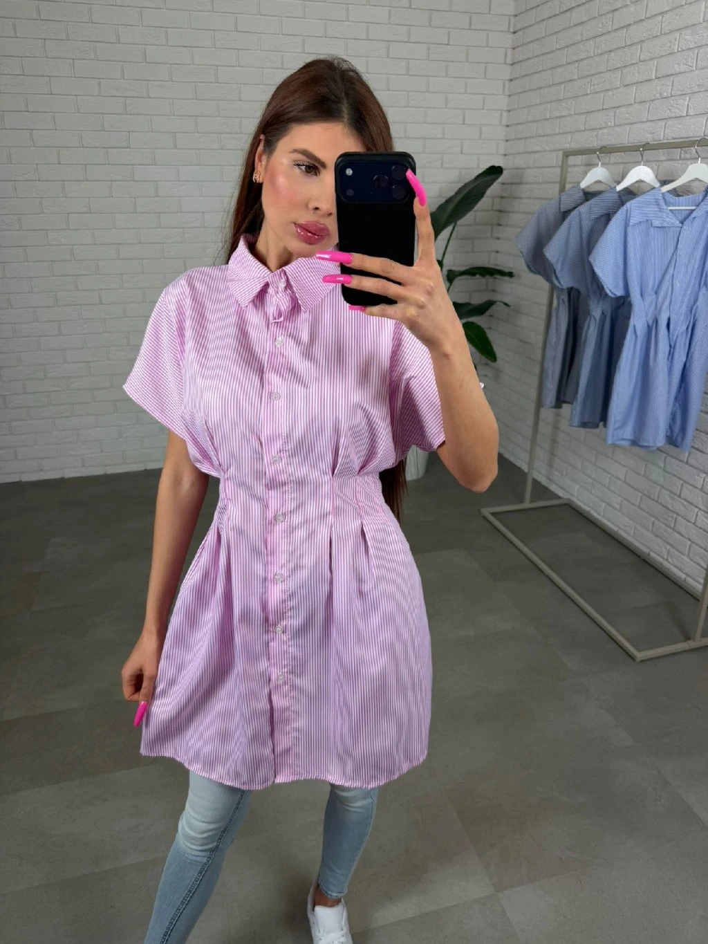 Krátký rukáv je širší a pohodlný, přizpůsobí se každé ručičce bez pocitu omezení. Pokud máš výšku do přibližně 170 cm, můžeš košili klidně nosit také jako šaty.