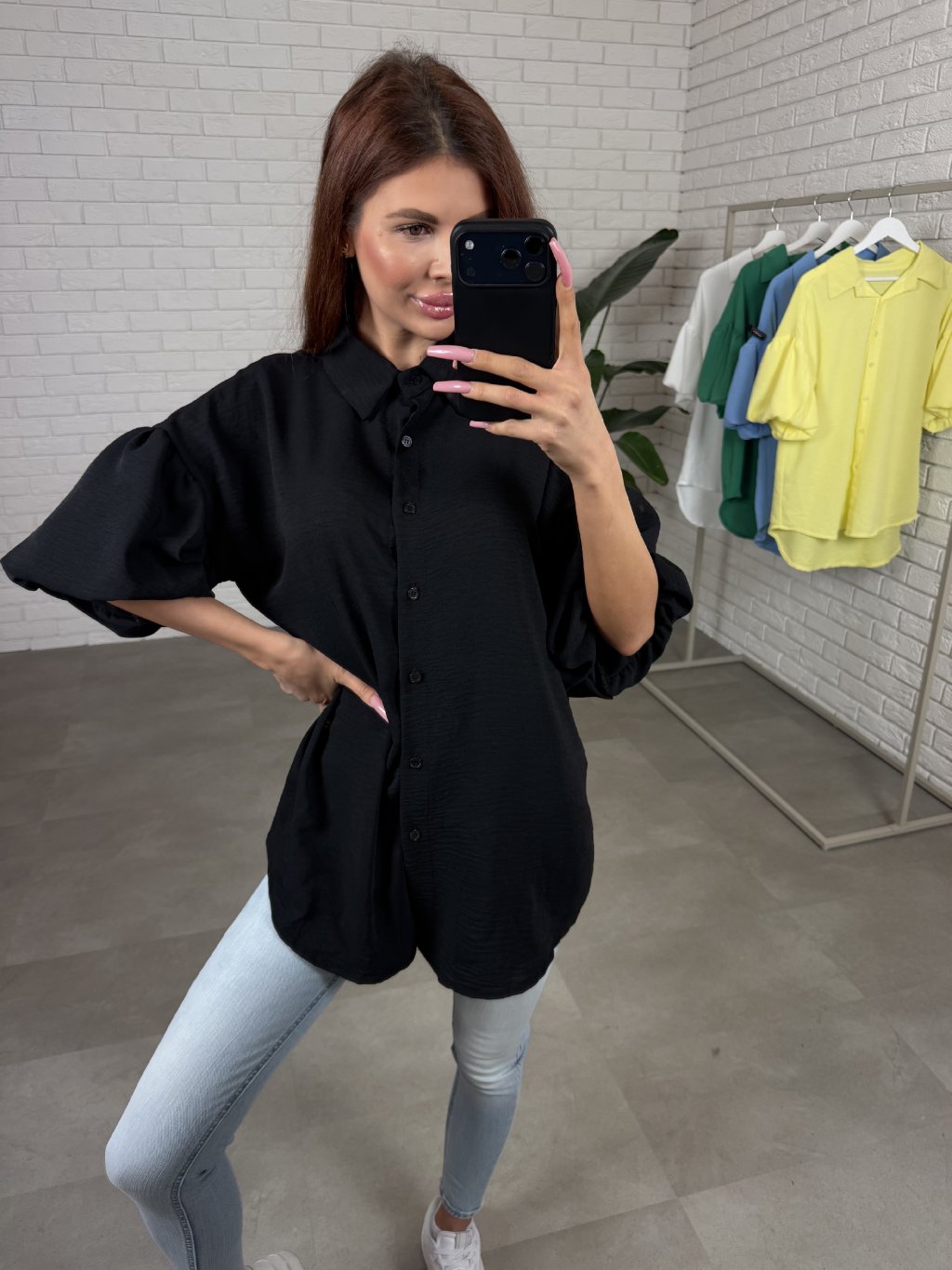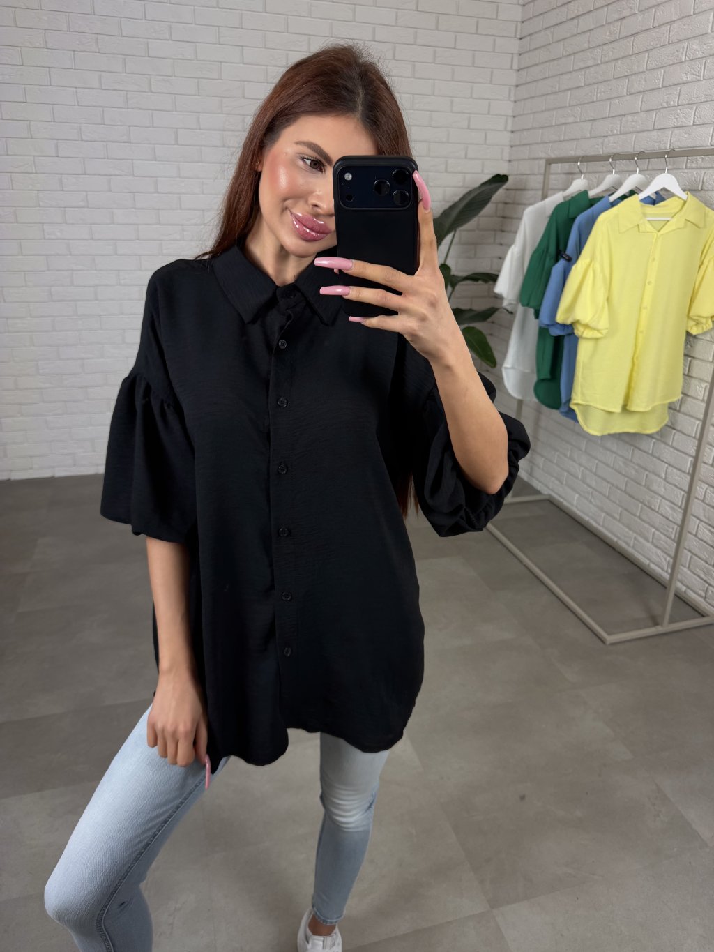 Materiál je příjemný na dotek, vzdušný a nemačkavý, díky čemuž si košile drží pěkný vzhled i během celého dne. Rukávy jsou rozšířeny balonové a končí po loktech, což vytváří zajímavý ženský detail.
