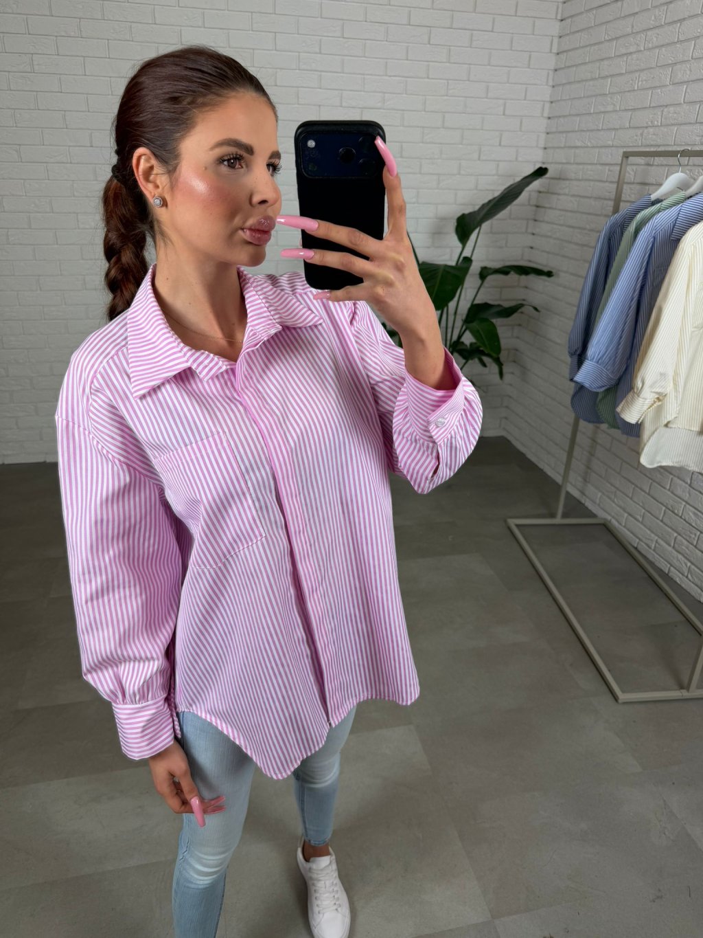 Košile DIANA je jednoduchý a nadčasový basic kousek, který si zamiluješ pro jeho pohodlí i univerzální využití. Vyrobena je z příjemného, vzdušného materiálu, který působí lehce a komfortně během celého dne. Volný ležérní střih přirozeně splývá na postavě, neobepíná problematické partie a pomáhá jemně maskovat nedokonalosti v oblasti bříška či boků. Svislé pruhy opticky prodlužují siluetu a dodávají outfitu upravený, svěží vzhled.