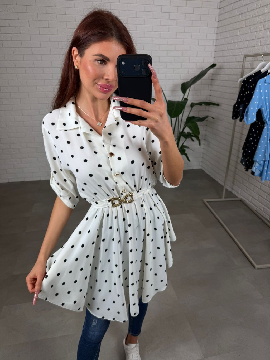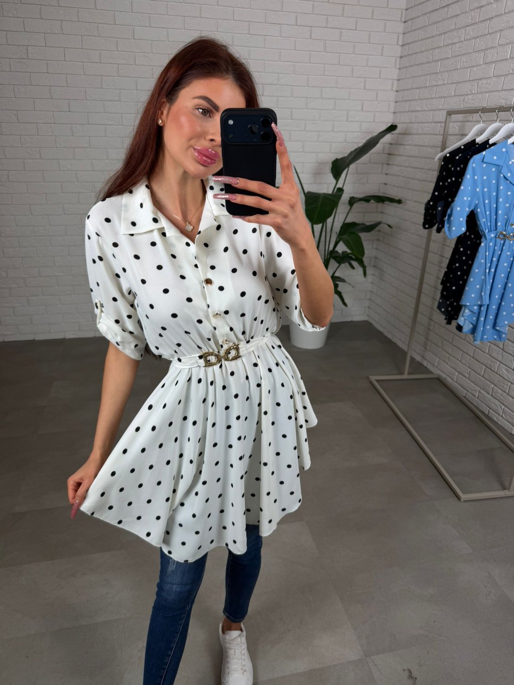 Asymetrická košilka DOTTY má jemný jarní nádech a střih, který působí lehce, žensky a zároveň umí moc pěkně zamaskovat to, co chceš schovat. Pokud chceš kousek, který lichotí postavě a přitom je pohodlný, DOTTY ti to splní hned při prvním oblečení. Áčkový tvar je volný, vzdušný, košilka je zároveň v pase zúžená opaskem, takže si siluetu upravíš přesně podle sebe a snadno zakryješ případné nedostatky bez zbytečného objemu. Vzadu tě potěší detail mašličky, která celý kousek zjemní a udělá ho ještě zajímavějším. Materiál je lehký, nemačkavý a příjemný na dotek, takže DOTTY je ideálním jarním či letním kouskem. Skvěle ji sladíš s džíny, legínami i elegantnějšími kalhotami, takže ji unosíš na běžné dny nebo do práce. Velikostně sedí na konfekční velikosti od S po L.