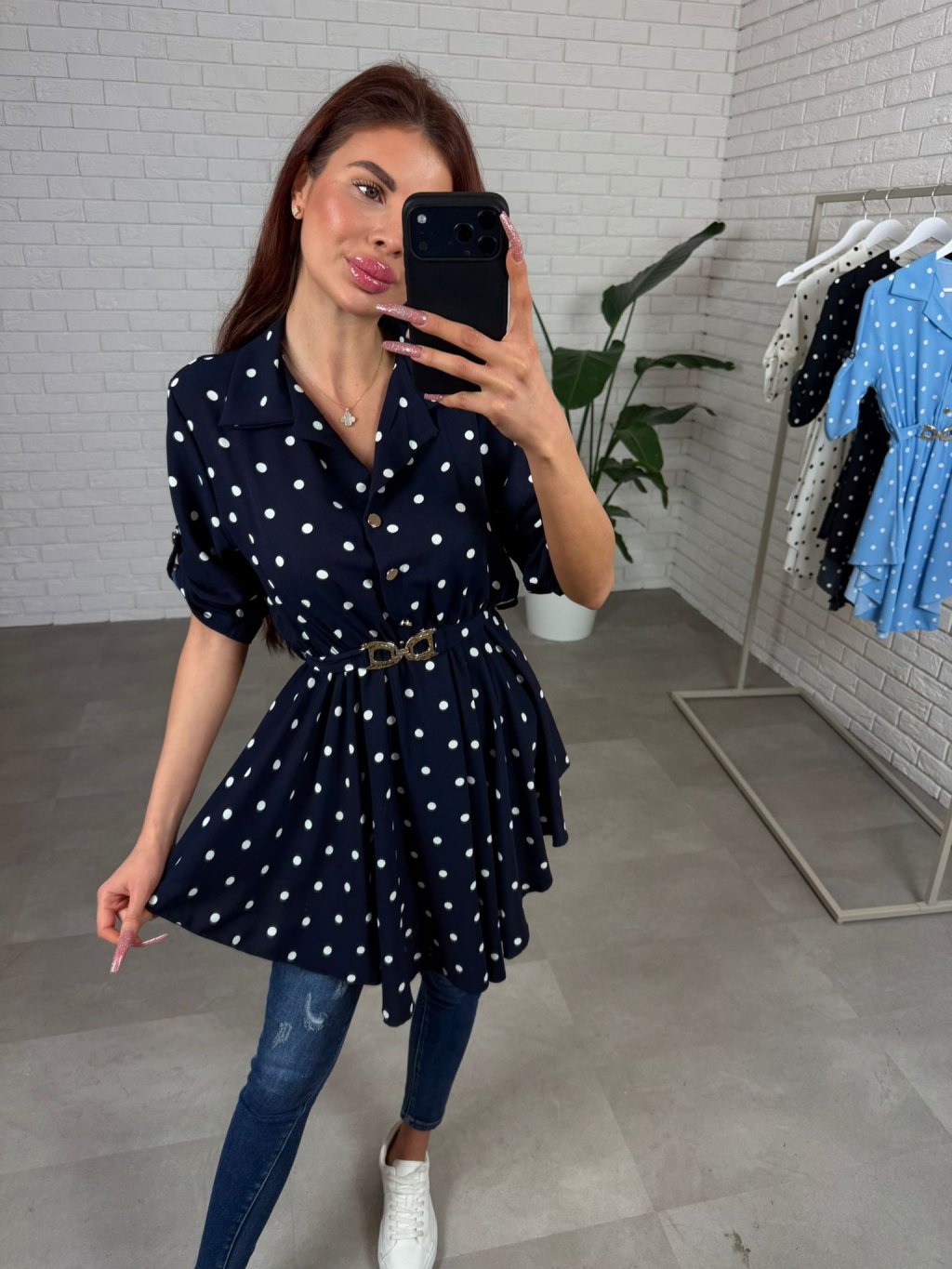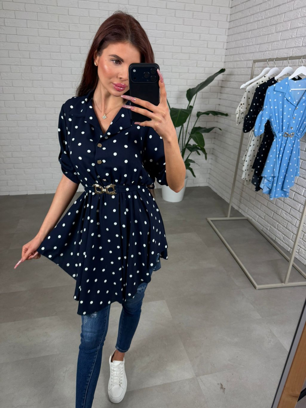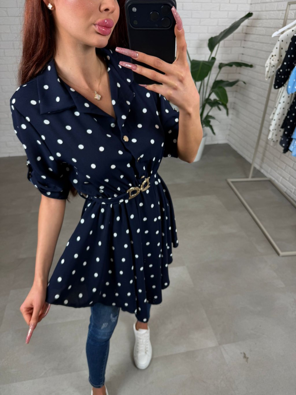 Asymetrická košilka DOTTY má jemný jarní nádech a střih, který působí lehce, žensky a zároveň umí moc pěkně zamaskovat to, co chceš schovat. Pokud chceš kousek, který lichotí postavě a přitom je pohodlný, DOTTY ti to splní hned při prvním oblečení. Áčkový tvar je volný, vzdušný, košilka je zároveň v pase zúžená opaskem, takže si siluetu upravíš přesně podle sebe a snadno zakryješ případné nedostatky bez zbytečného objemu. Vzadu tě potěší detail mašličky, která celý kousek zjemní a udělá ho ještě zajímavějším. Materiál je lehký, nemačkavý a příjemný na dotek, takže DOTTY je ideálním jarním či letním kouskem. Skvěle ji sladíš s džíny, legínami i elegantnějšími kalhotami, takže ji unosíš na běžné dny nebo do práce. Velikostně sedí na konfekční velikosti od S po L.