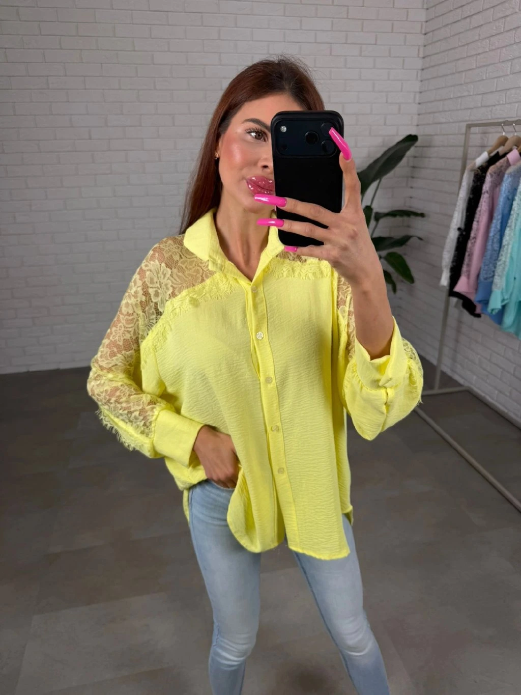 Košile LUAN je navržena v uvolněném ležérním střihu, který působí nenuceně a příjemně se nosí během celého dne. Volně splývá na postavě a díky prodloužené zádi poskytuje více krytí i v oblasti hýždí. Jemné poloprůsvitné krajkové detaily na rukávech dodávají košili ženský a elegantní nádech, díky čemuž působí zajímavě i v jednoduchých outfitech. Rukávy jsou velmi volné a pohodlné, takže se přizpůsobí každé ručičce bez pocitu omezení. Košile se skvěle kombinuje s džíny, kalhotami i legínami a vytváří upravený, ale stále pohodlný look na každý den. Sedne na postavy s konfekční velikostí od S po XL.
