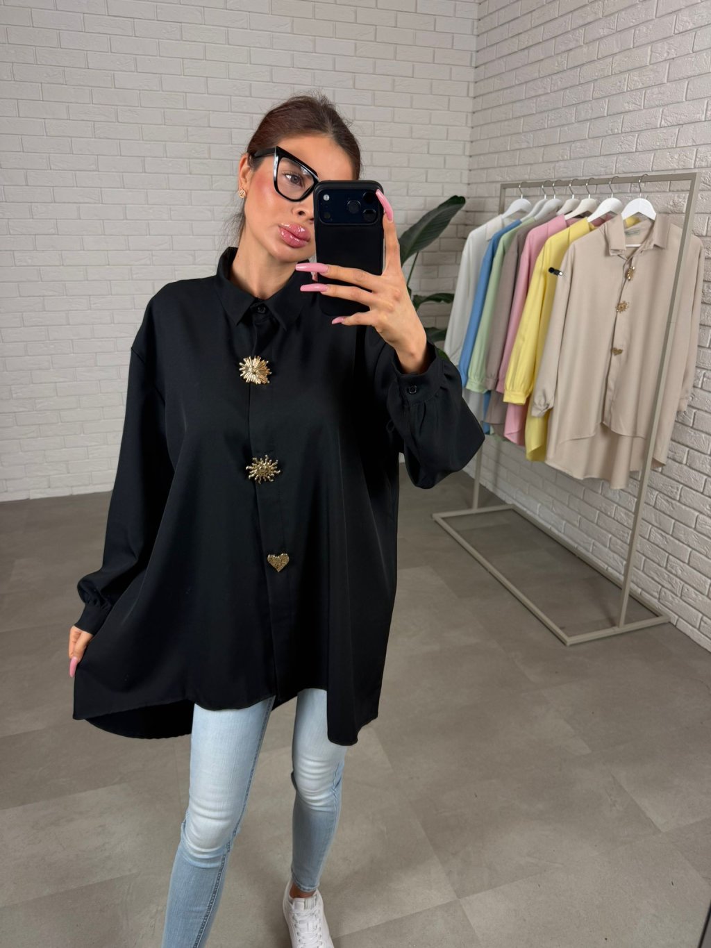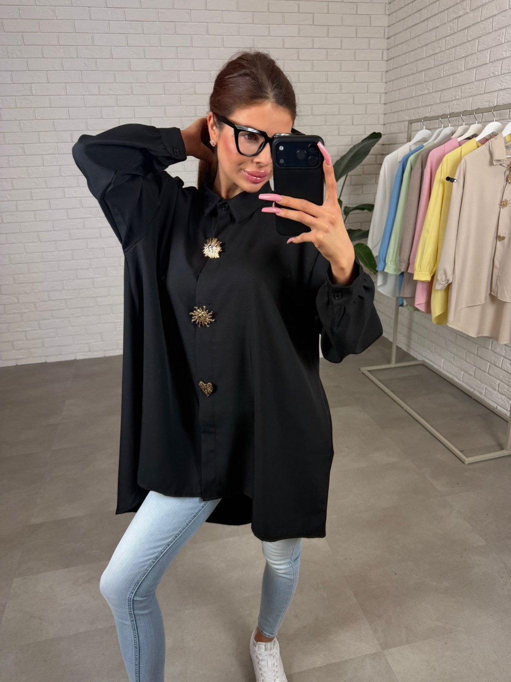 Košile OTILIA je přesně ten typ kousku, který působí luxusně už na první pohled. Vzdušný nekrčivý materiál je příjemný na dotek a postará se o to, že budeš vypadat upraveně i po celém dni. Prodloužený střih krásně splývá a v zadní části sahá až ke kolenům, takže vytvoří elegantní linii a zároveň jemně zakryje oblast bříška i boků. Volné rukávy působí velmi žensky a lichotivě, jsou pohodlné a opticky zjemní paže. Ozdobné brože na knoflících dodají košili výjimečný detail a když budeš chtít minimalističtější look, jednoduše je odepneš a nosíš košili i bez nich. OTILIA se dá nosit jako prodloužená košile k riflím, legínám, i jako elegantní tunika na běžný den či do práce. Velikostně sedí pro kočky od M po XL.