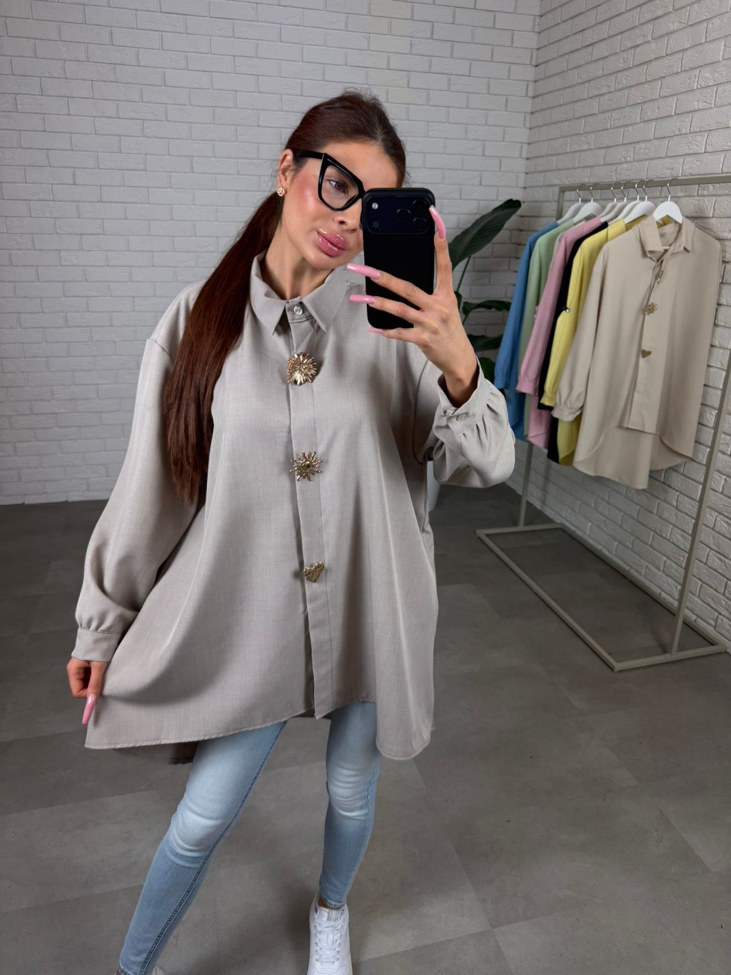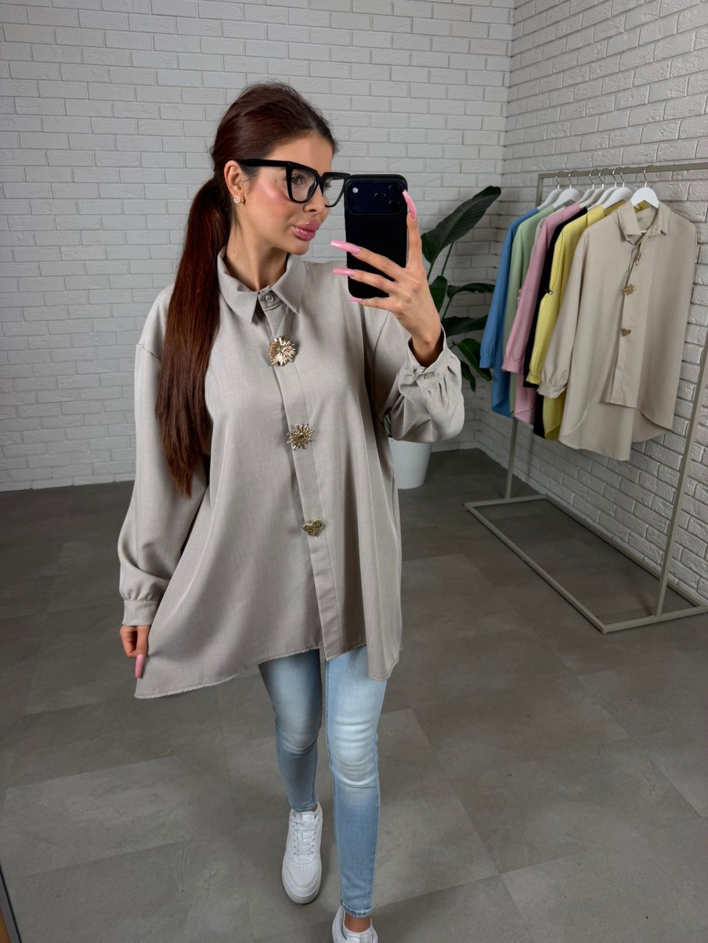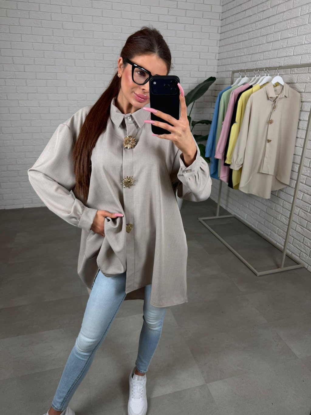 Košile OTILIA je přesně ten typ kousku, který působí luxusně už na první pohled. Vzdušný nekrčivý materiál je příjemný na dotek a postará se o to, že budeš vypadat upraveně i po celém dni. Prodloužený střih krásně splývá a v zadní části sahá až ke kolenům, takže vytvoří elegantní linii a zároveň jemně zakryje oblast bříška i boků. Volné rukávy působí velmi žensky a lichotivě, jsou pohodlné a opticky zjemní paže. Ozdobné brože na knoflících dodají košili výjimečný detail a když budeš chtít minimalističtější look, jednoduše je odepneš a nosíš košili i bez nich. OTILIA se dá nosit jako prodloužená košile k riflím, legínám, i jako elegantní tunika na běžný den či do práce. Velikostně sedí pro kočky od M po XL.