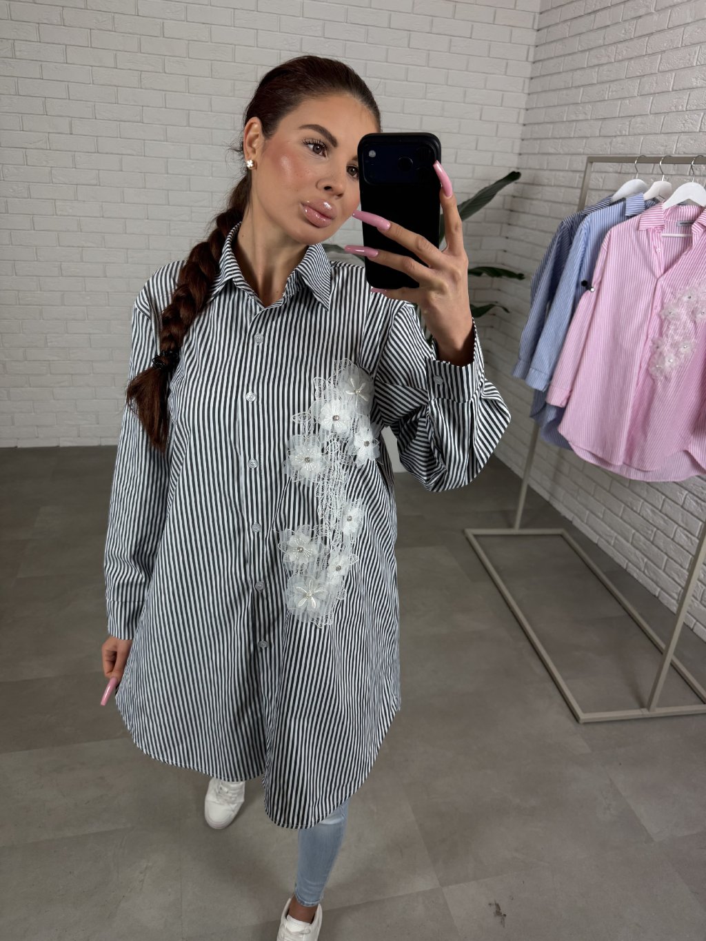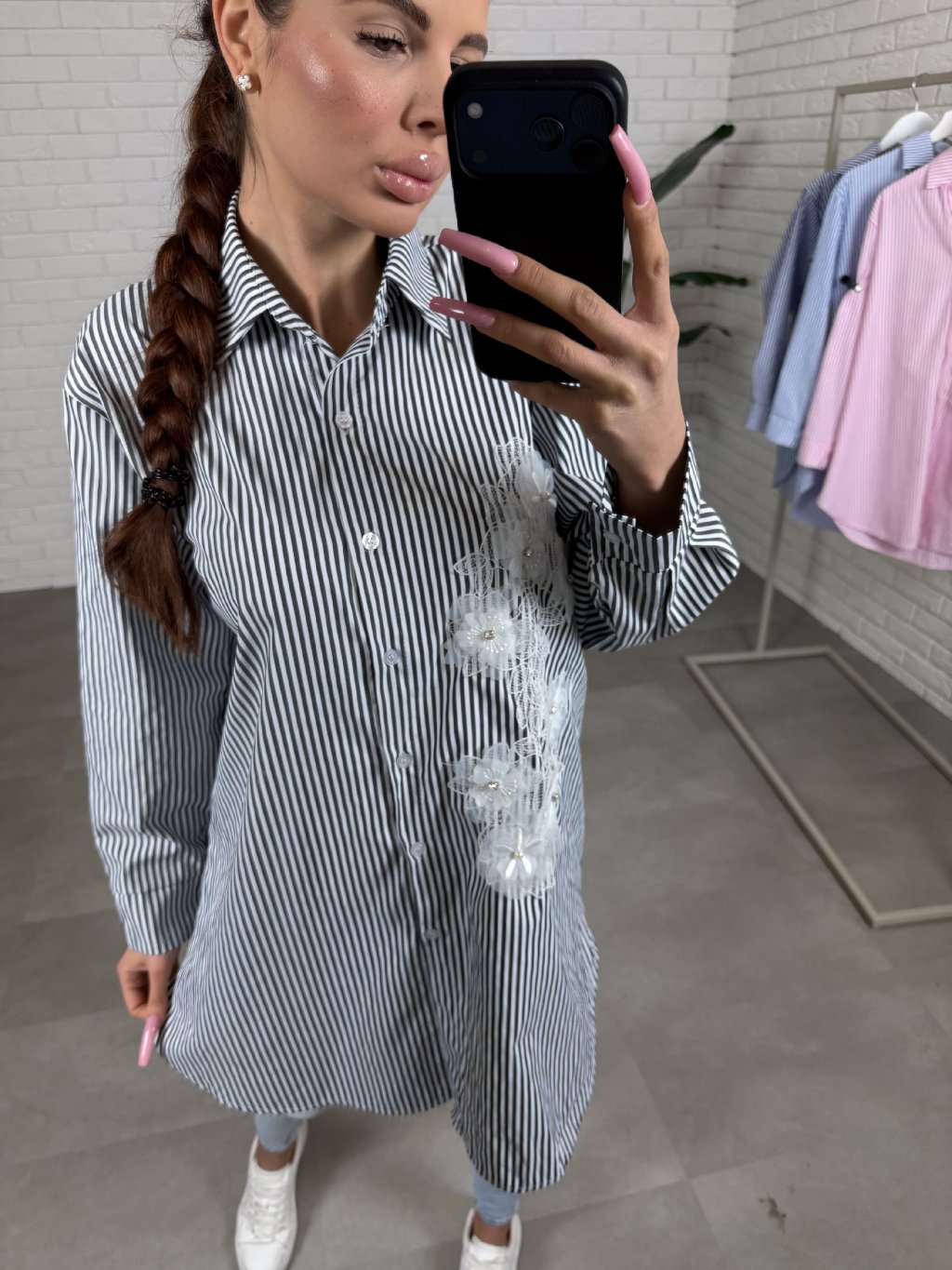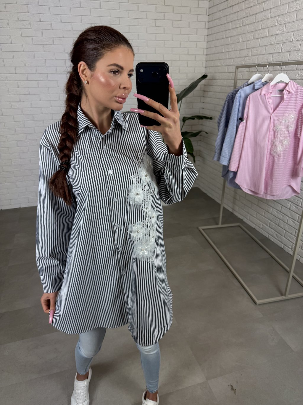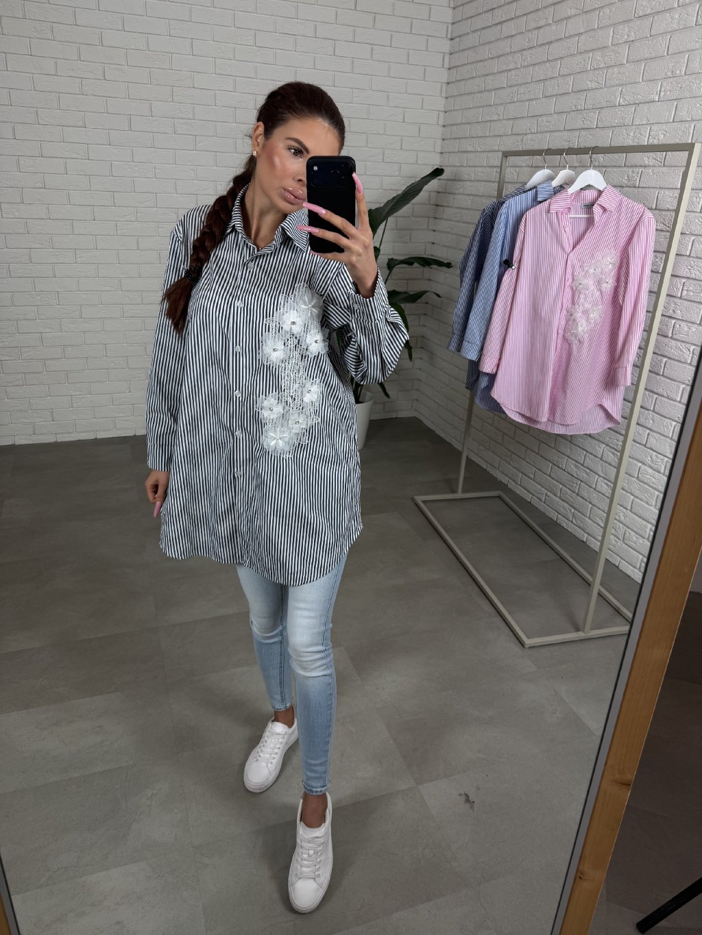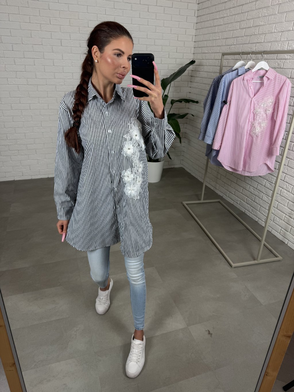 Košile RALON je nádherný romantický kousek, který působí jemně, žensky a zároveň velmi stylově. Vyrobená je z příjemného materiálu, který krásně splývá na postavě a zajistí komfort během celého dne. Charakteristickým detailem je ozdobná nášivka s 3D kvítky, která dodává košili výjimečný a elegantní vzhled. Svislé pruhy opticky zeštíhlují siluetu a vytvářejí upravený dojem, díky čemuž se v ní budeš cítit sebevědomě a žensky. Dlouhý rukáv působí nadčasově a košile je vhodná i pro vyšší kočky, přičemž velikostně sedne od S po L. RALON se skvěle kombinuje s kalhotami i sukní a je ideální volbou do práce i na běžné dny, kdy chceš vypadat upraveně bez námahy.