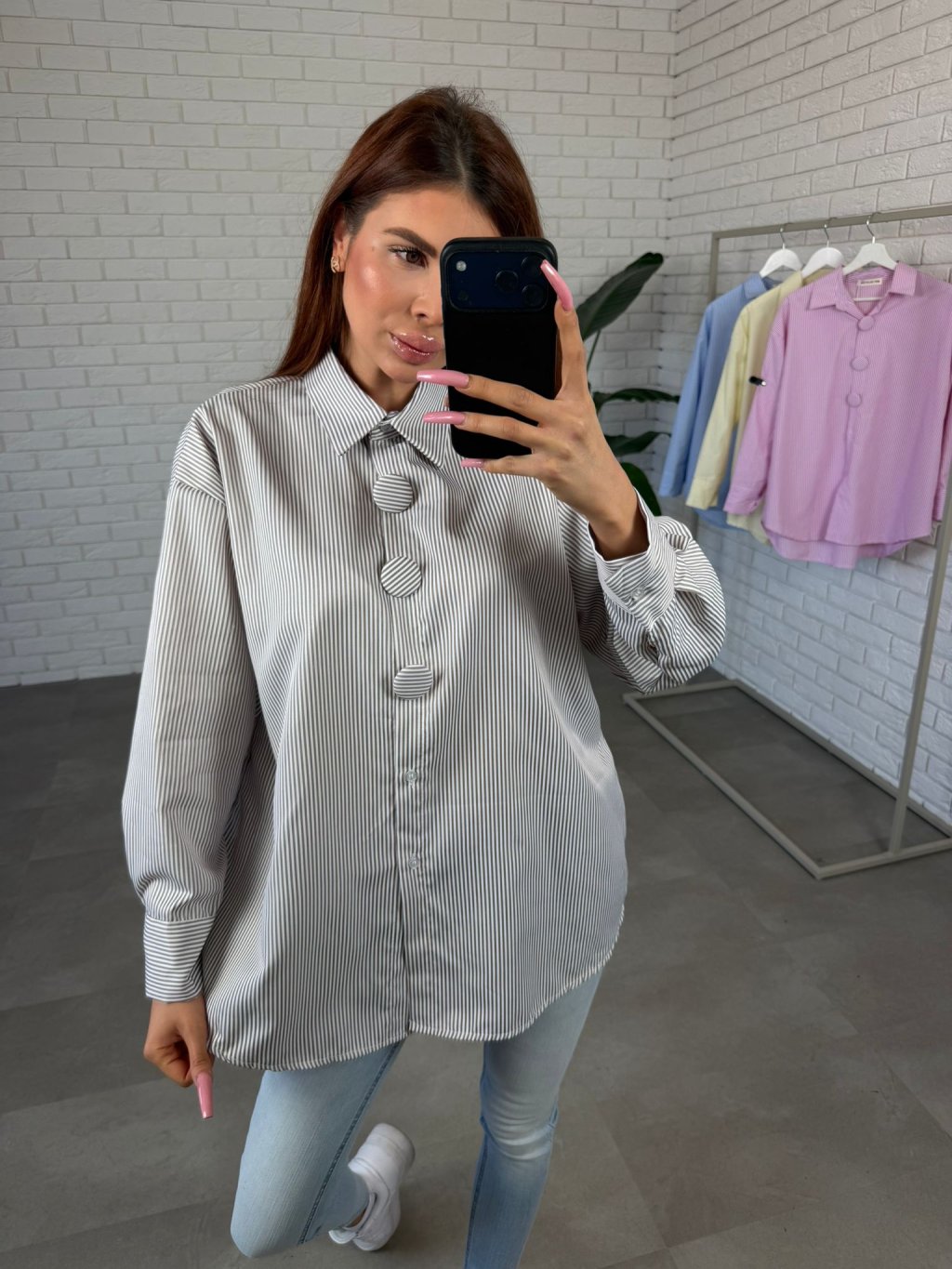 Košile ZELNA je volný, prodloužený kousek, který působí moderně a zároveň velmi pohodlně. Díky svému ležérnímu střihu krásně splývá na postavě a neobepíná problémové partie, takže se v ní budeš cítit uvolněně během celého dne. Materiál je lehký a vzdušný, ideální pro každodenní nošení, zejména během teplejších dnů. Košile se příjemně nosí a zároveň si zachovává upravený vzhled. Dominantním prvkem jsou tři velké ozdobné knoflíky, které dodávají košili výrazný a trendy detail a dělají z ní zajímavý kousek i při jednoduchém stylingu. Košile ZELNA se skvěle kombinuje s kalhotami, džíny i legínami a velikostně sedne na konfekční velikosti od S po L.