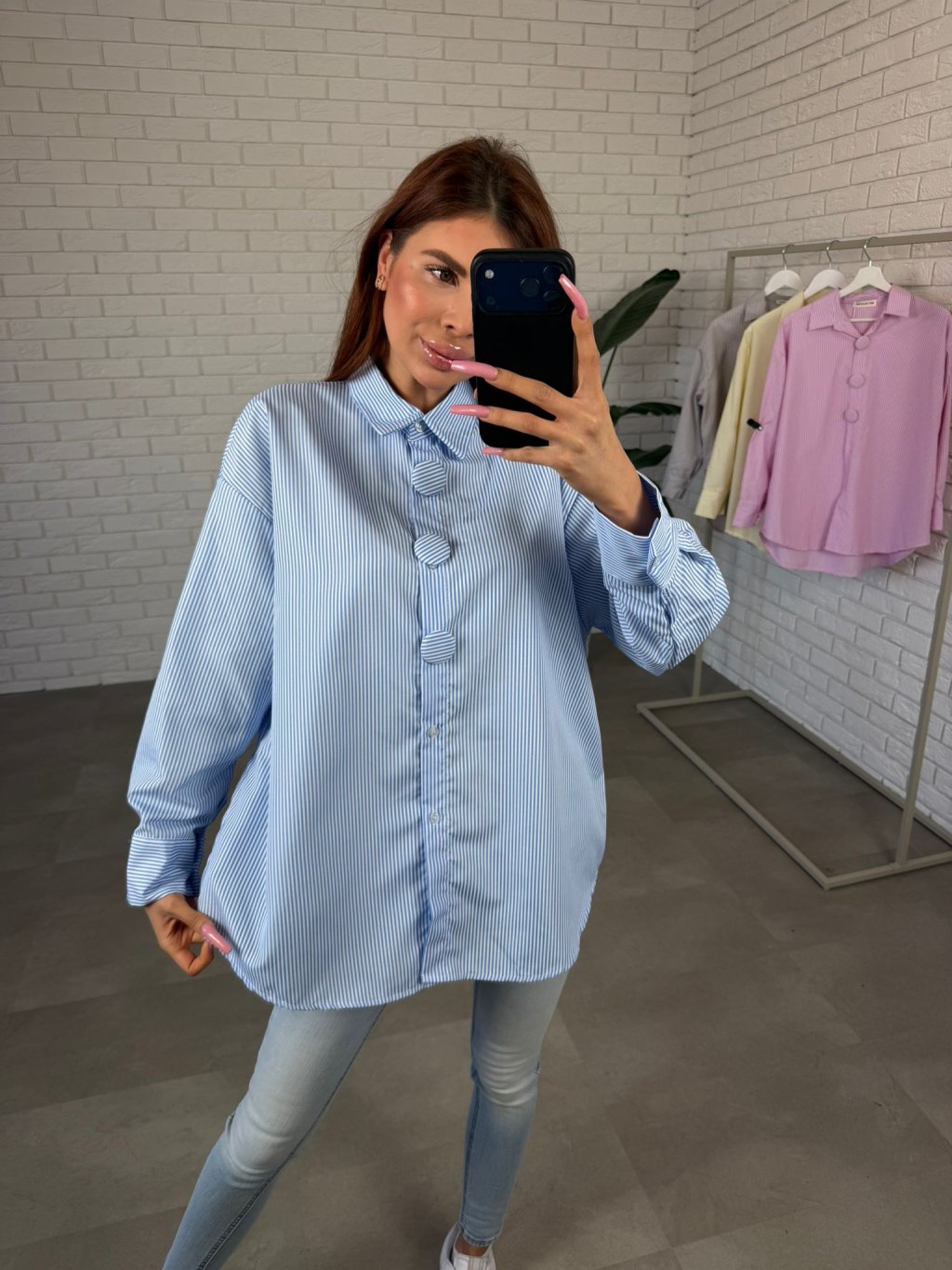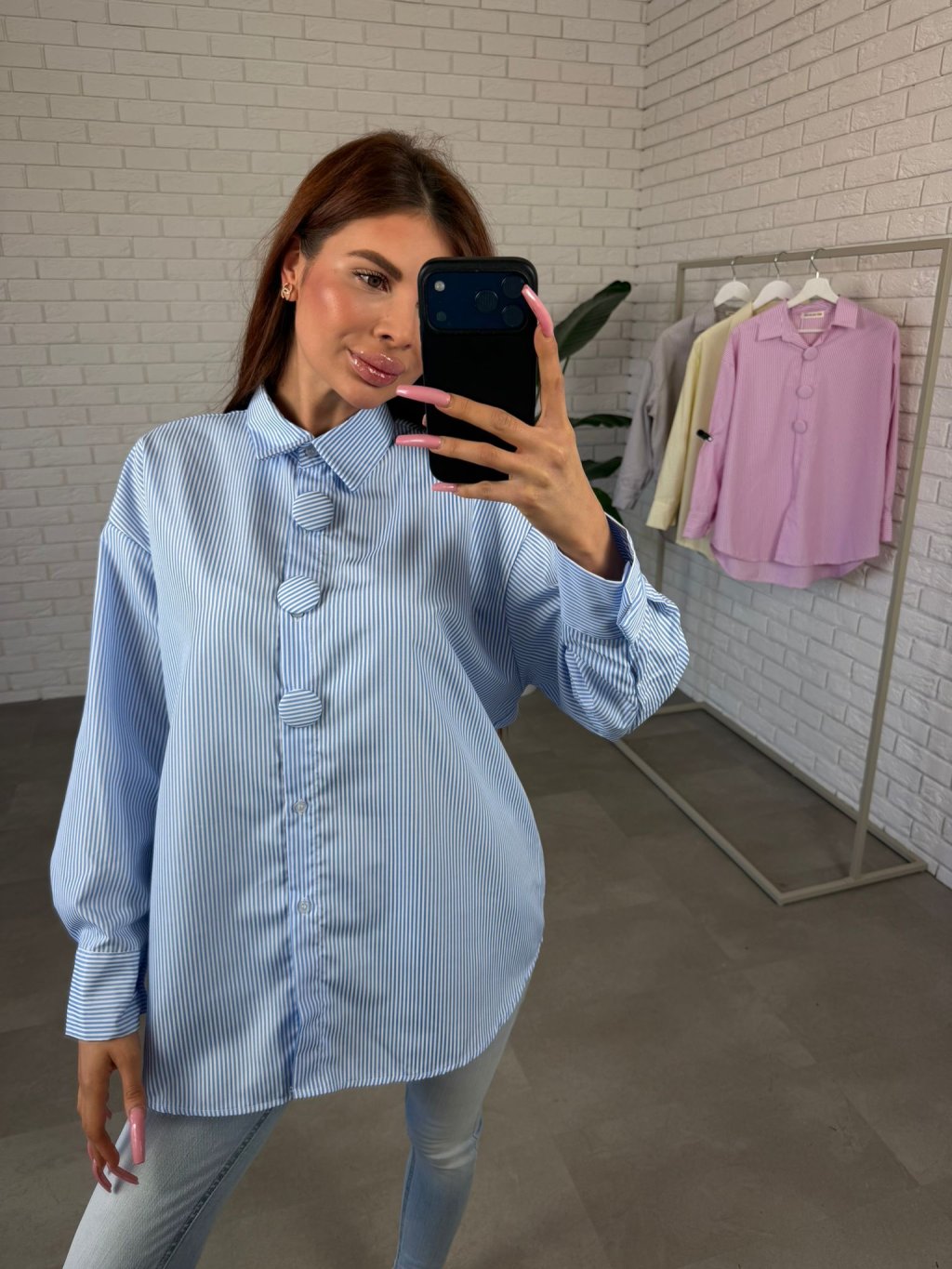 Košile ZELNA je volný, prodloužený kousek, který působí moderně a zároveň velmi pohodlně. Díky svému ležérnímu střihu krásně splývá na postavě a neobepíná problémové partie, takže se v ní budeš cítit uvolněně během celého dne. Materiál je lehký a vzdušný, ideální pro každodenní nošení, zejména během teplejších dnů. Košile se příjemně nosí a zároveň si zachovává upravený vzhled. Dominantním prvkem jsou tři velké ozdobné knoflíky, které dodávají košili výrazný a trendy detail a dělají z ní zajímavý kousek i při jednoduchém stylingu. Košile ZELNA se skvěle kombinuje s kalhotami, džíny i legínami a velikostně sedne na konfekční velikosti od S po L.