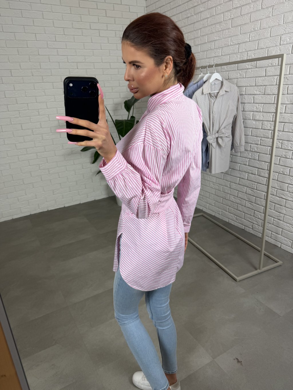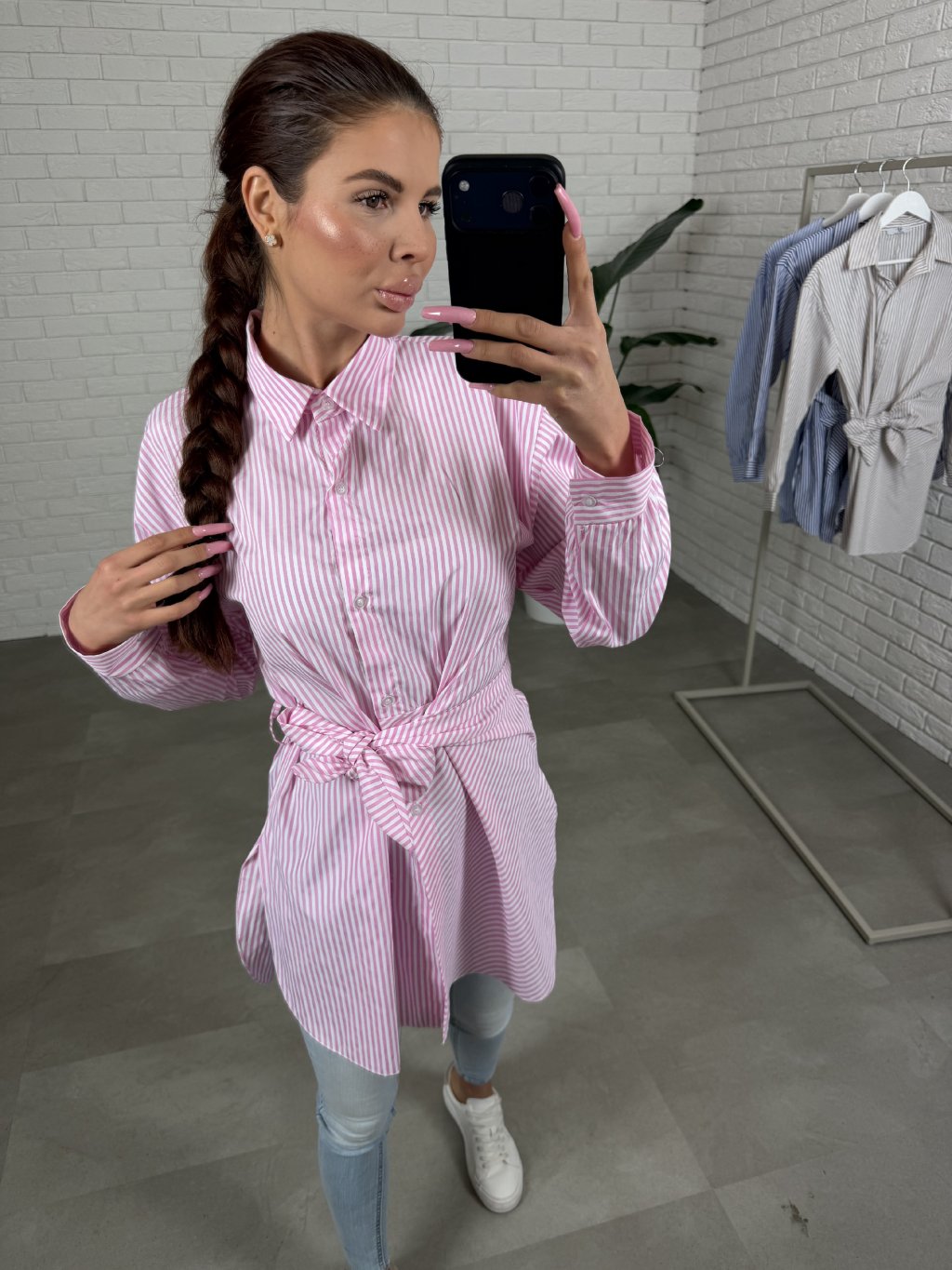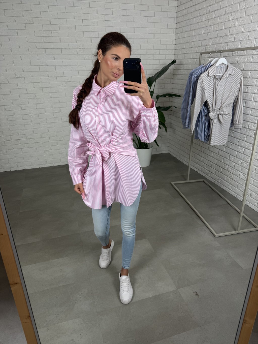 Košile ZEOR je lehký, vzdušný kousek, který si zamiluješ na běžné dny i do práce, když chceš působit upraveně bez námahy. Příjemný materiál krásně splývá a díky svislým proužkům vytváří čistý, opticky zeštíhlující efekt. Délka pod zadek dodá komfort a zároveň působí velmi prakticky, ať už ji nosíš k legínám, džínám nebo elegantnějším kalhotám. V pase je ozdobná mašle, která košili jemně dotvaruje a přidá ženský detail bez přehnanosti. ZEOR sedí na konfekční velikosti od XS po L a snadno se kombinuje, takže z ní uděláš outfit, který vypadá promyšleně i tehdy, když ráno nechceš nic řešit.