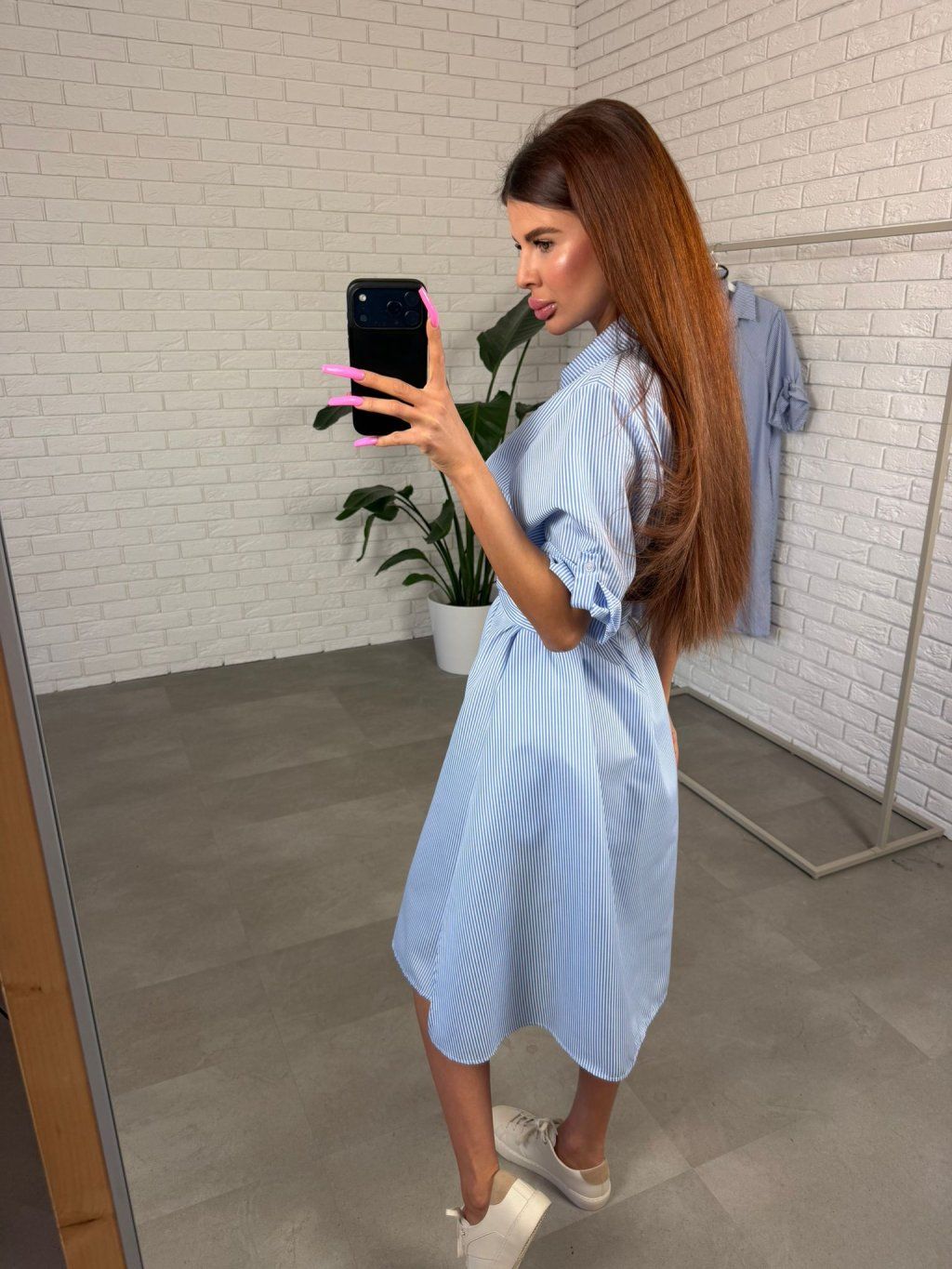 Vzdušný, nadýchaný materiál je velmi příjemný na nošení, snadno se hýbe spolu s tělem a dodává celému looku uvolněný, ale stále upravený vzhled. Svislé pruhy opticky prodlužují siluetu a zároveň vytváří jemně zeštíhlující efekt. Košilový střih se zapínáním působí čistě a nadčasově, zatímco pásek umožní přizpůsobit šaty přesně podle postavy a pěkně zvýraznit pas.