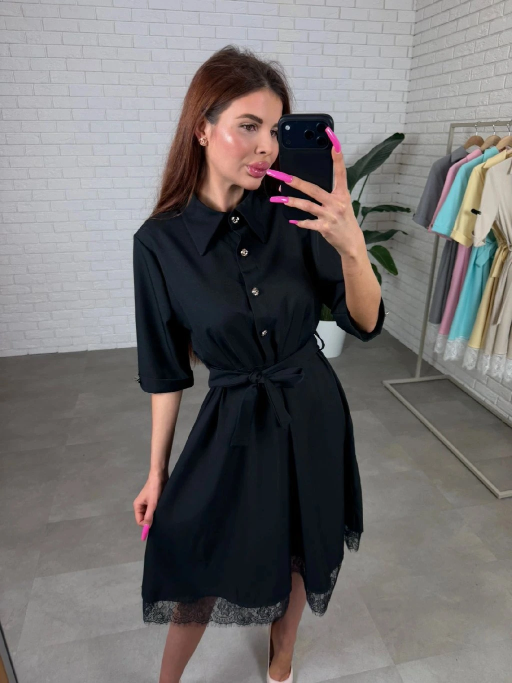 Košilové šaty s krajkou ELMA černé
