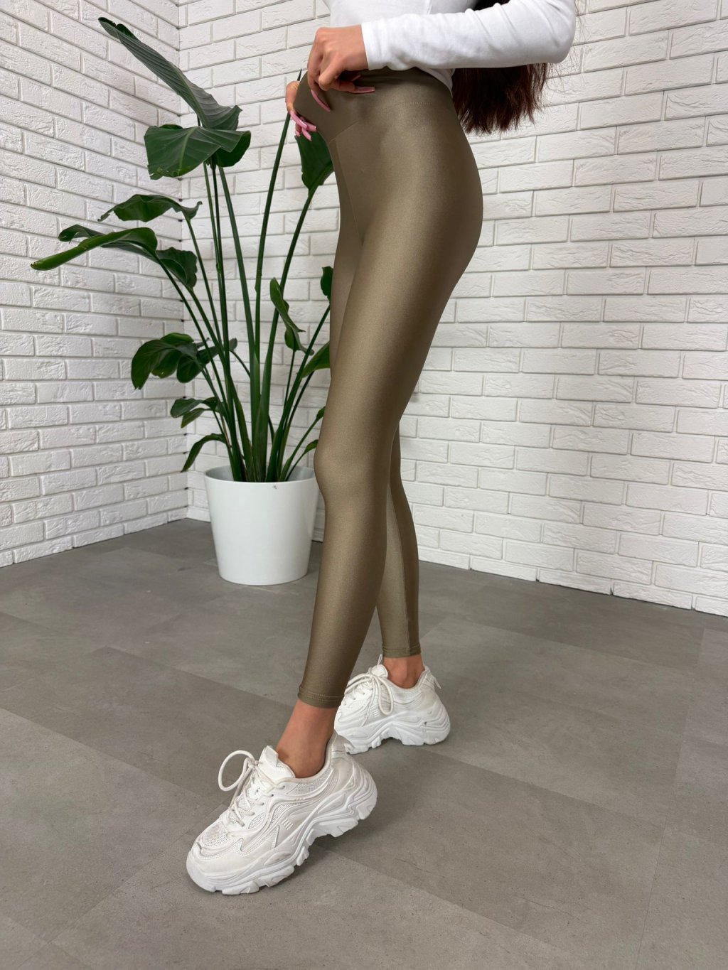 Lesklé legíny s ultra vysokým pasem ZERO šampaňské