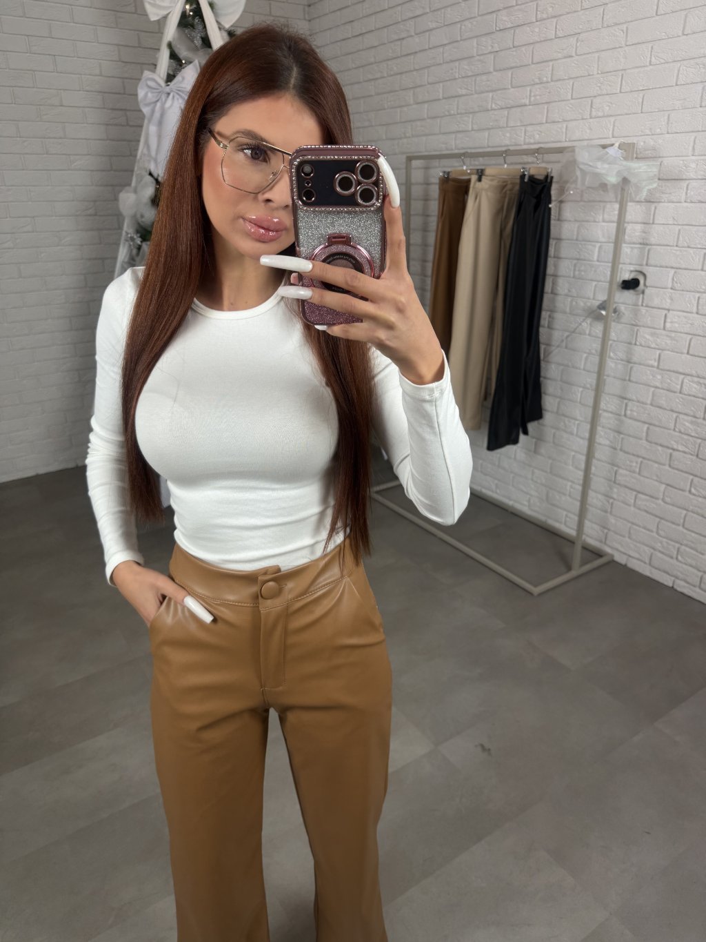 Dokonalé matné koženkové kalhoty DEBORAH jsou kouskem, který žádné stylové dámě v šatníku nemůže chybět. Mají vysoký pas, střih je rovný a na konci mírně a hlavně decentně rozšířený. Oteplené jsou termoplyšem díky čemuž je lze nosit do exteriéru i do interiéru. Krásné neutrální barvy zaručí elegantní ale nadčasově stylový look. Vhodné jsou na nižší kočky do 170cm. Velikost S sedí i na XS, při jiných velikostech vol velikost jakou běžně nosíš. Modelka má na sobě velikost S.