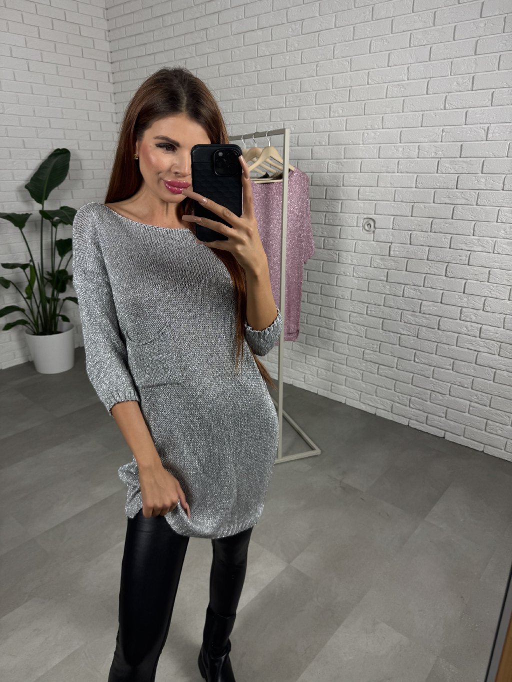 Metalická tunika AMINA je jednoduchý snadno kombinovatelný kousek. Sedne od XS po XL. Tříčtvrteční rukáv. Na pravé straně se nachází kapsa. Vhodné také na těhotenské bříško. Délka nad kolena. Modelka na fotce má 170 cm.