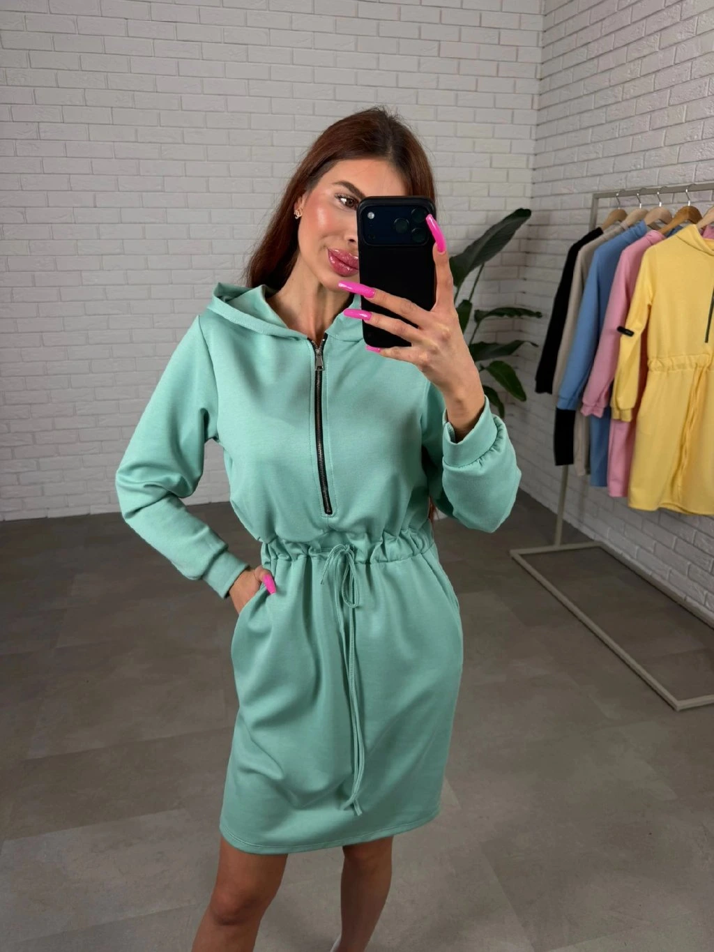 Kapuce dodává šatům sportovně-ležérní charakter a zvyšuje celkový komfort při nošení. Délkou sahají nad kolena a nejkrásněji sednou kočkám do výšky přibližně 175 cm.