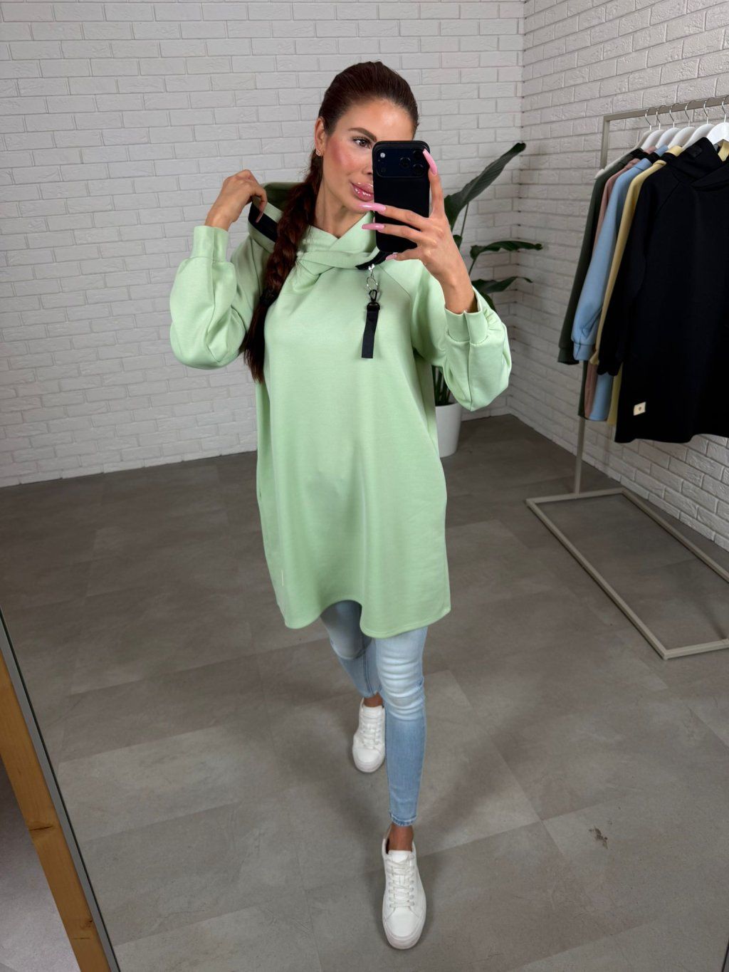 Mikinové šaty LUMUS jsou ušity z našeho oblíbeného poloteplákového materiálu, který se během nošení nemačká a stále je příjemně měkký a pohodlný. Volný střih zaručí komfort a zakryje případné nedokonalosti v oblasti pasu, bříška a boků. Kapuce lemovaná zipem je detail, který činí celý kousek zajímavější a dodává mu moderní nádech. Po bocích najdeš hluboké kapsy, které jsou praktické při běžném nošení a zároveň podtrhnou ležérní styl. Dlouhé rukávy jsou navrženy tak, aby sedly i na delší ruce, takže se nemusíš bát krátké délky. LUMUS se ideálně kombinuje s legínami, přidej tenisky a máš sportovní eleganci a komfort v jednom bez zbytečného řešení. Velikostně sedí na konfekční velikosti od M po XL a výškově je vhodný pro kočky do 180 cm.