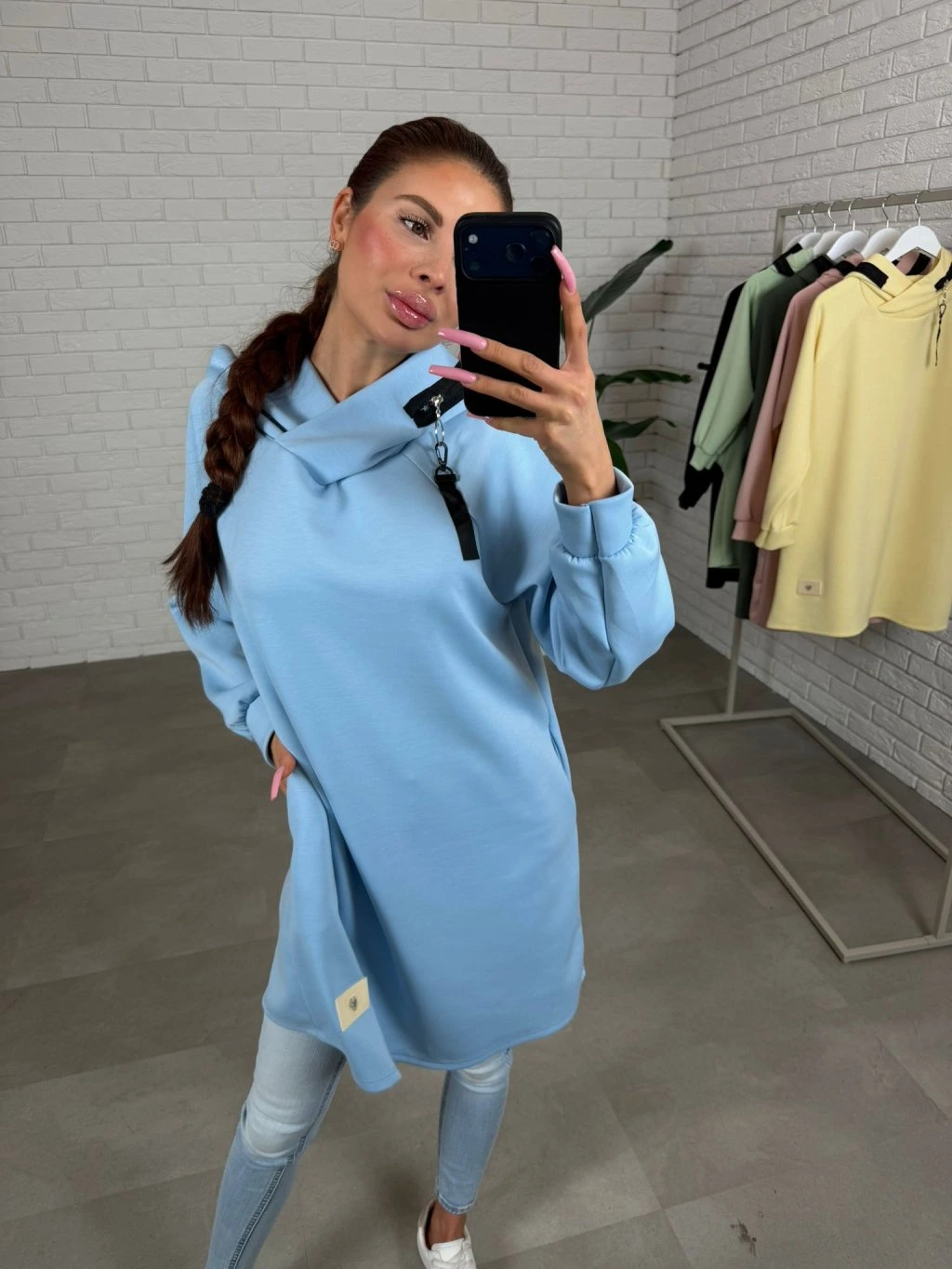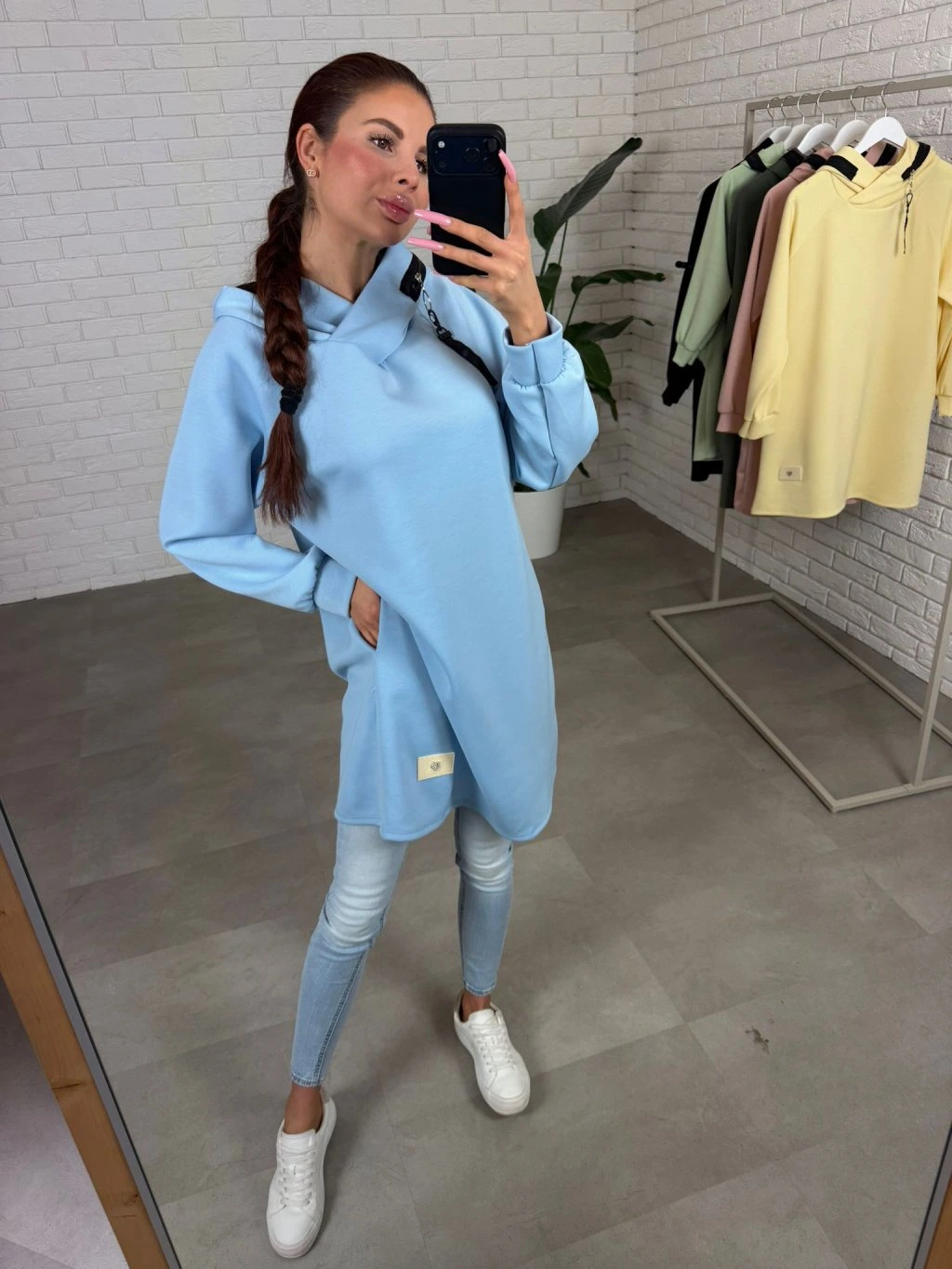 Mikinové šaty LUMUS jsou ušity z našeho oblíbeného poloteplákového materiálu, který se během nošení nemačká a stále je příjemně měkký a pohodlný. Volný střih zaručí komfort a zakryje případné nedokonalosti v oblasti pasu, bříška a boků. Kapuce lemovaná zipem je detail, který činí celý kousek zajímavější a dodává mu moderní nádech. Po bocích najdeš hluboké kapsy, které jsou praktické při běžném nošení a zároveň podtrhnou ležérní styl. Dlouhé rukávy jsou navrženy tak, aby sedly i na delší ruce, takže se nemusíš bát krátké délky. LUMUS se ideálně kombinuje s legínami, přidej tenisky a máš sportovní eleganci a komfort v jednom bez zbytečného řešení. Velikostně sedí na konfekční velikosti od M po XL a výškově je vhodný pro kočky do 180 cm.