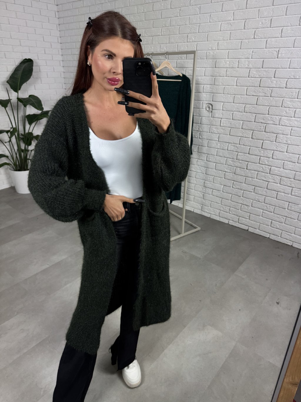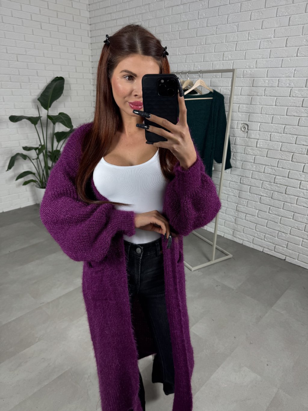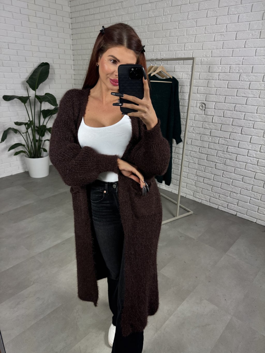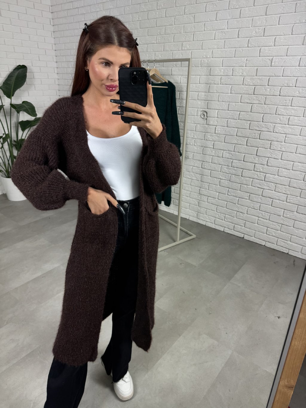 Mohérový maxi kardigan TOBIAS je skvělou volbou pro podzim a zimu. Po bocích jsou kapsy. Na rukávech jsou patenty. Délka těsně pod kolena. Hřejivý materiál. Vhodné pro každý typ postavy díky volnému střihu. Sedne od XS po XL.
