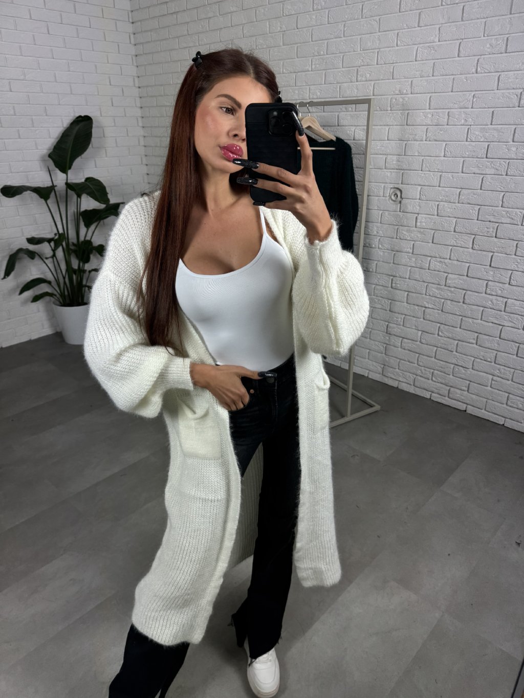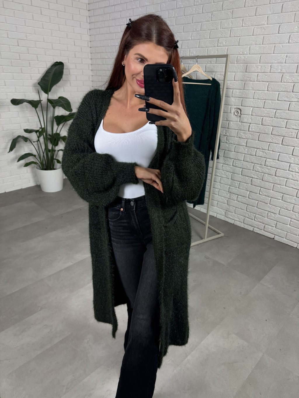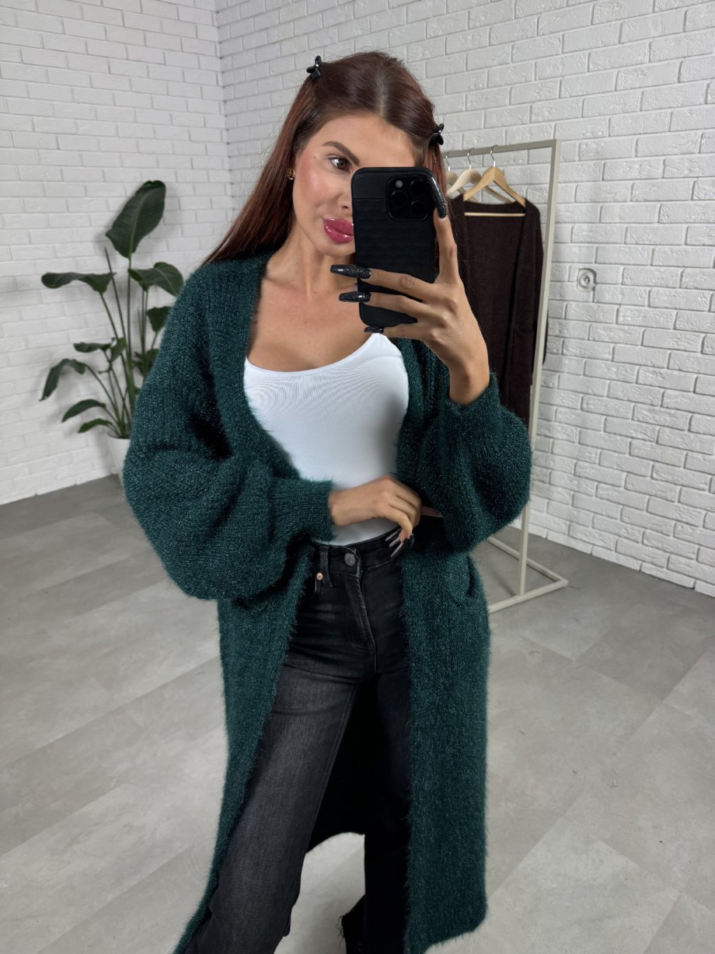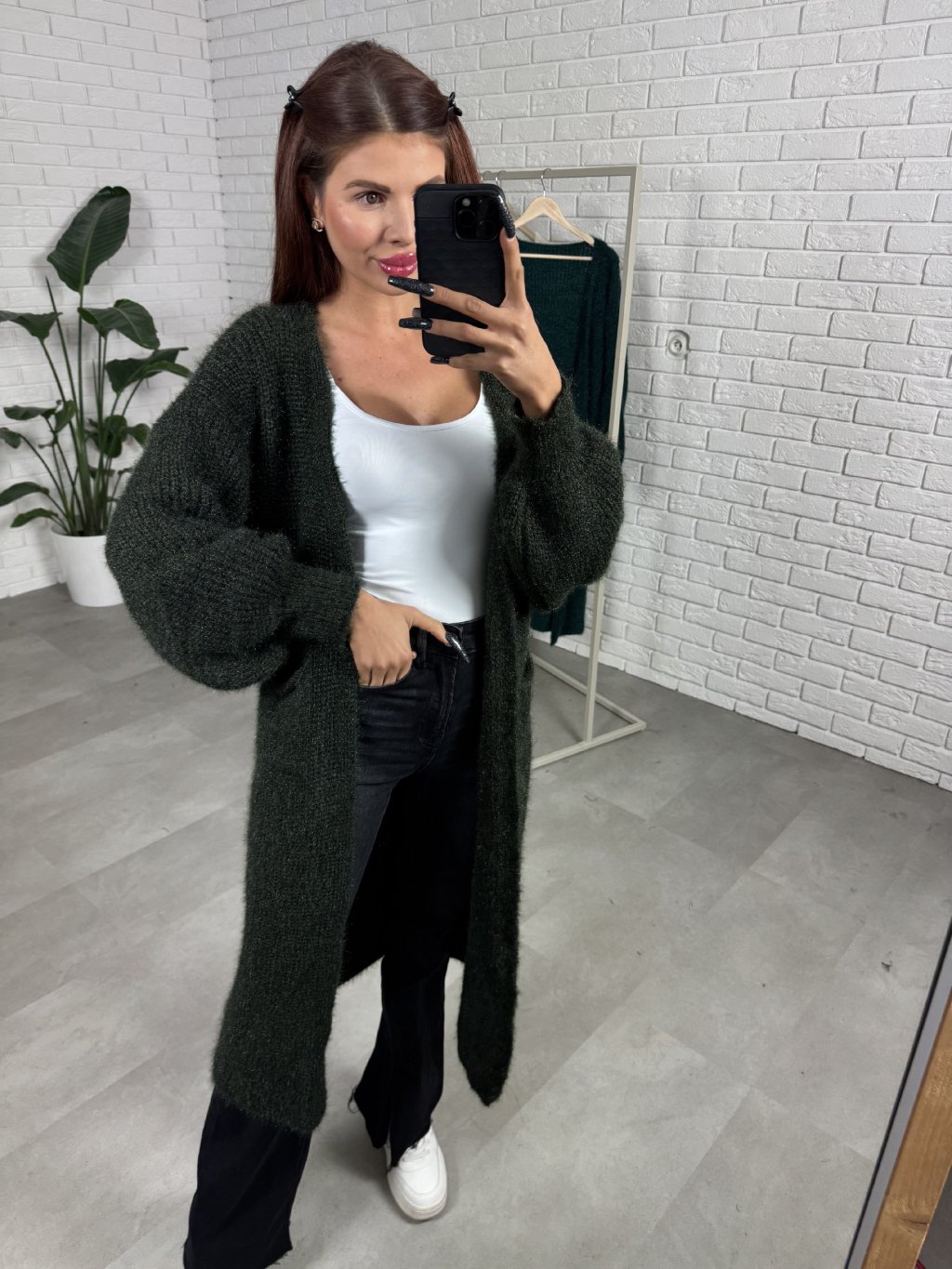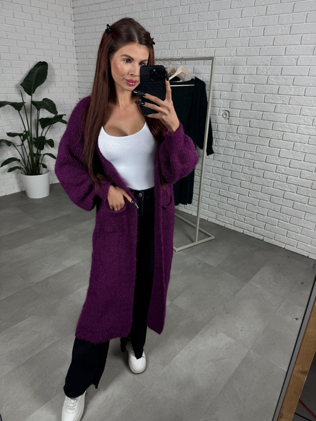 Mohérový maxi kardigan TOBIAS je skvělou volbou pro podzim a zimu. Po bocích jsou kapsy. Na rukávech jsou patenty. Délka těsně pod kolena. Hřejivý materiál. Vhodné pro každý typ postavy díky volnému střihu. Sedne od XS po XL.