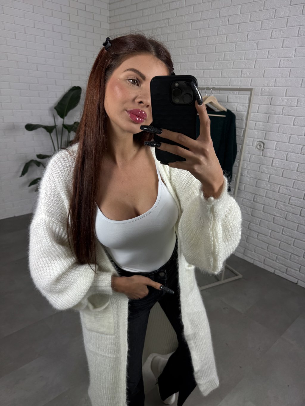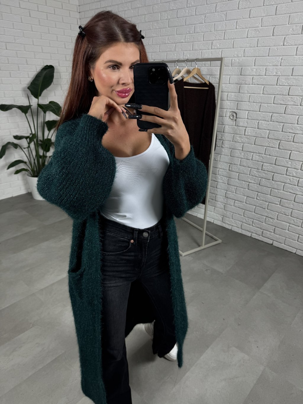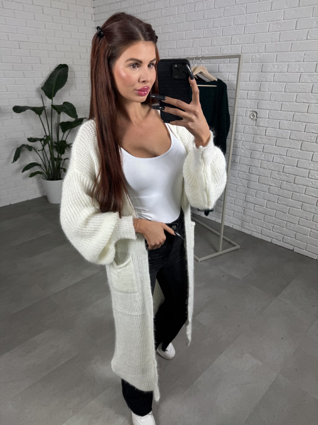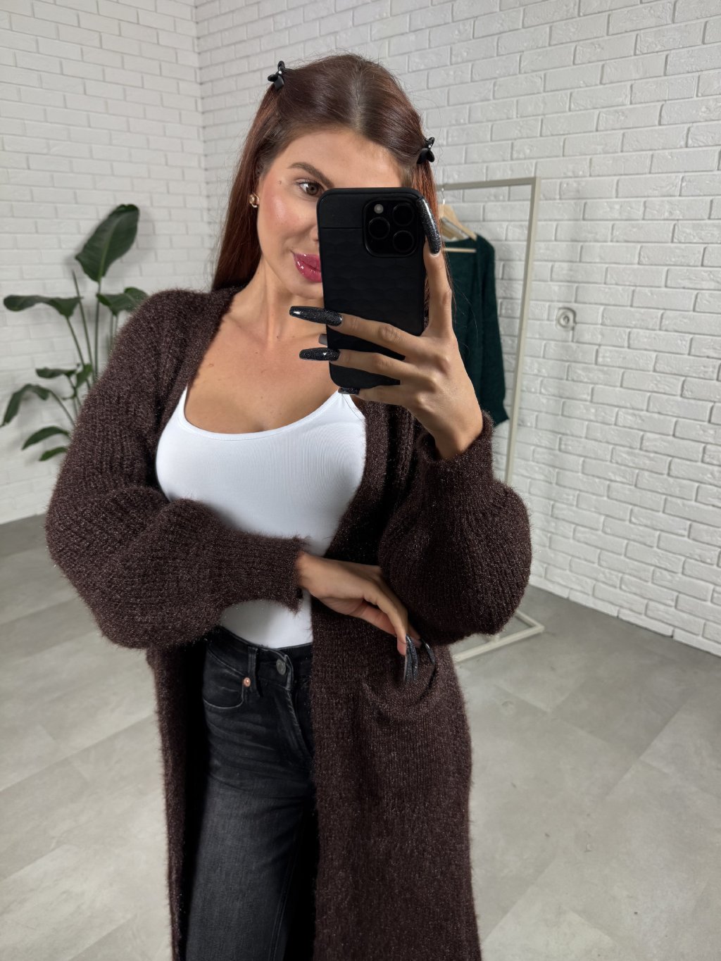 Mohérový maxi kardigan TOBIAS je skvělou volbou pro podzim a zimu. Po bocích jsou kapsy. Na rukávech jsou patenty. Délka těsně pod kolena. Hřejivý materiál. Vhodné pro každý typ postavy díky volnému střihu. Sedne od XS po XL.