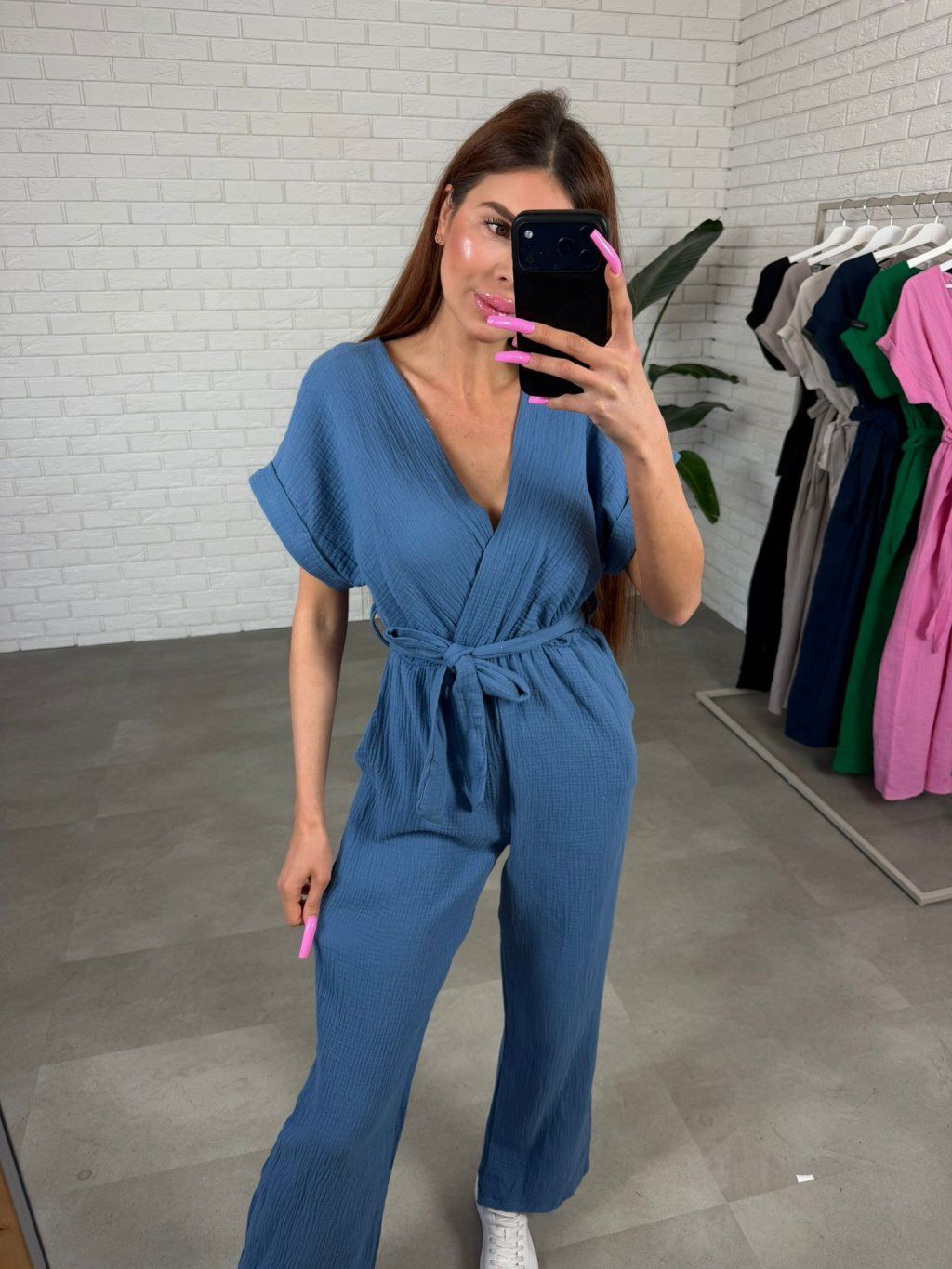 Překládaný dekolt se přizpůsobí různým typům postavy a pěkně zvýrazní horní část siluety. Pod prsy se nachází elastická guma, která jemně zvýrazní pas a zároveň poskytne dostatek komfortu bez obepínání. Volnější rukávy zajistí pohodlí pro každou ručičku a rovný střih kalhot přirozeně splývá na postavě. Nechybí ani hluboké kapsy, které oceníš při každodenním nošení. Overal je ideální pro nižší kočky přibližně do 170 cm a velikostně sedne od XS po menší L.