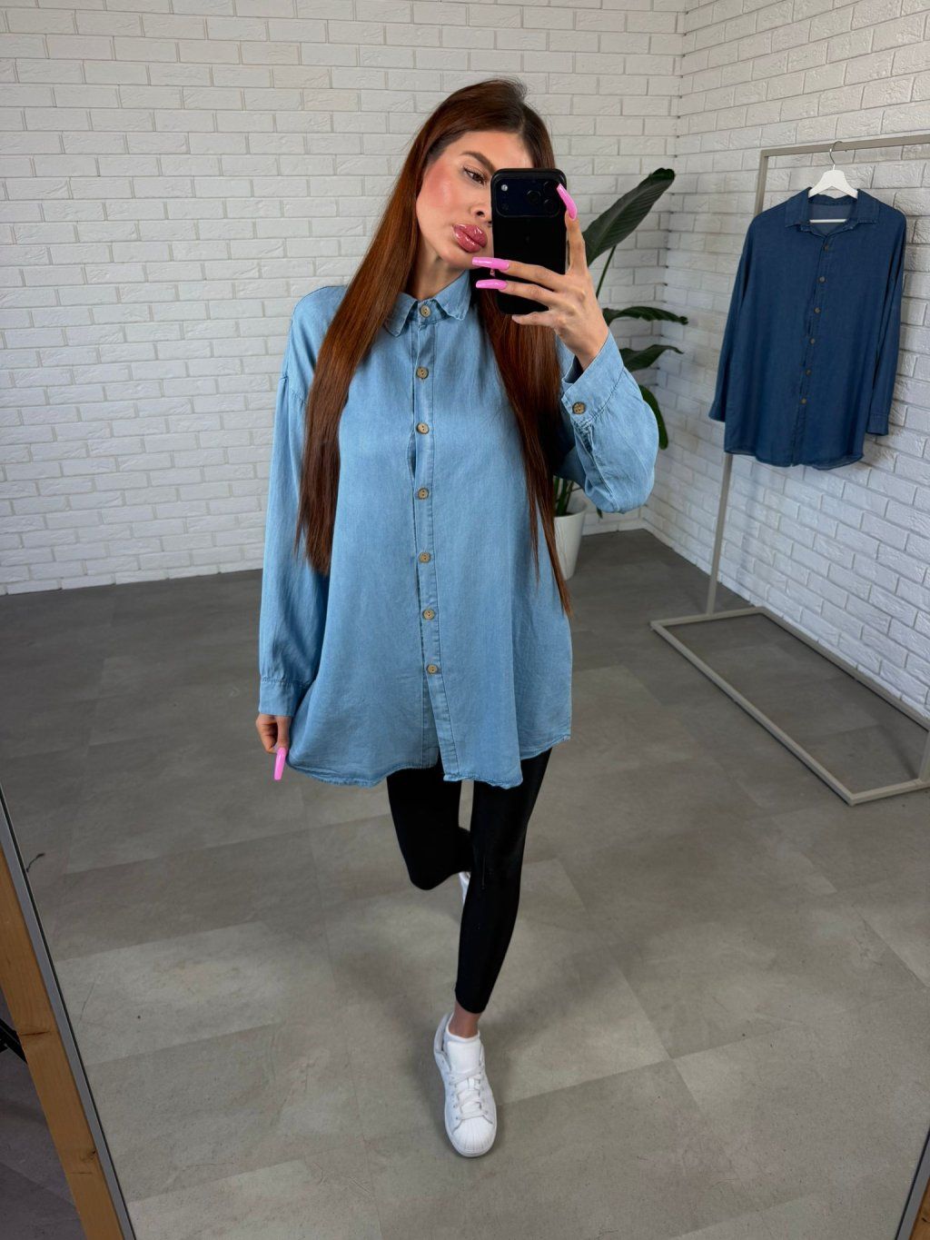 Košile EMANUELA je ušita z poloriflového materiálu, který působí jako riflovina, ale je mnohem měkčí, poddajnější a pohodlnější na nošení.