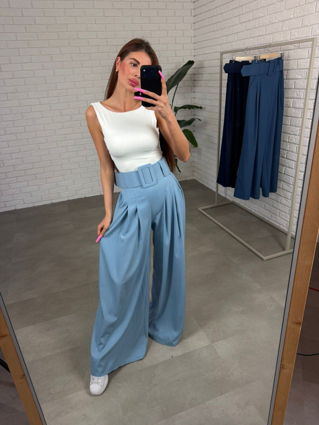 Poloriflové kalhoty NATALY jsou navrženy pro vysoké kočky, které potřebují opravdu dostatečnou délku. Extra dlouhý střih krásně sedne postavám od 175 cm a vytváří elegantní, prodlouženou siluetu. Materiál působí jako džínovina, ale je výrazně měkčí, příjemnější a nemačkavý, takže kalhoty si drží upravený vzhled během celého dne. Vysoký pas spolu s výrazným hrubším páskem krásně zvýrazní siluetu a vytvoří pěknou linii v pase.