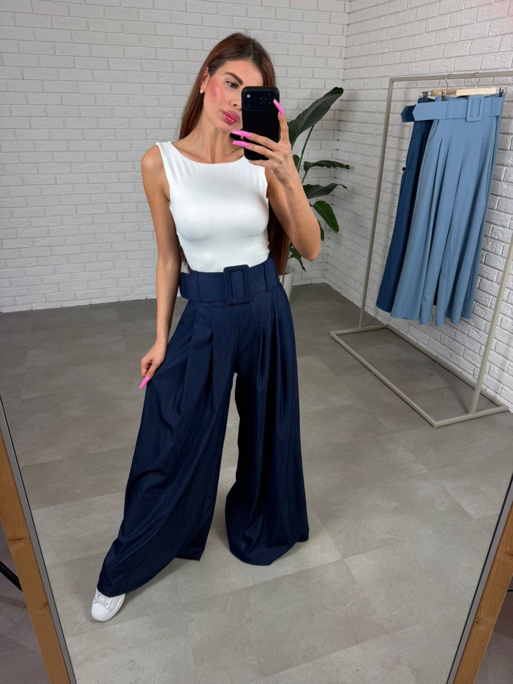 Polorifľové nohavice NATALY sú navrhnuté pre vysoké kočky, ktoré potrebujú naozaj dostatočnú dĺžku. Extra dlhý strih krásne sadne postavám od 175 cm a vytvára elegantnú, predĺženú siluetu.Materiál pôsobí ako rifľovina, no je výrazne mäkší, príjemnejší a nekrčivý, takže nohavice si držia upravený vzhľad počas celého dňa. Vysoký pás spolu s výrazným hrubším opaskom krásne zvýrazní siluetu a vytvorí peknú líniu v páse.
